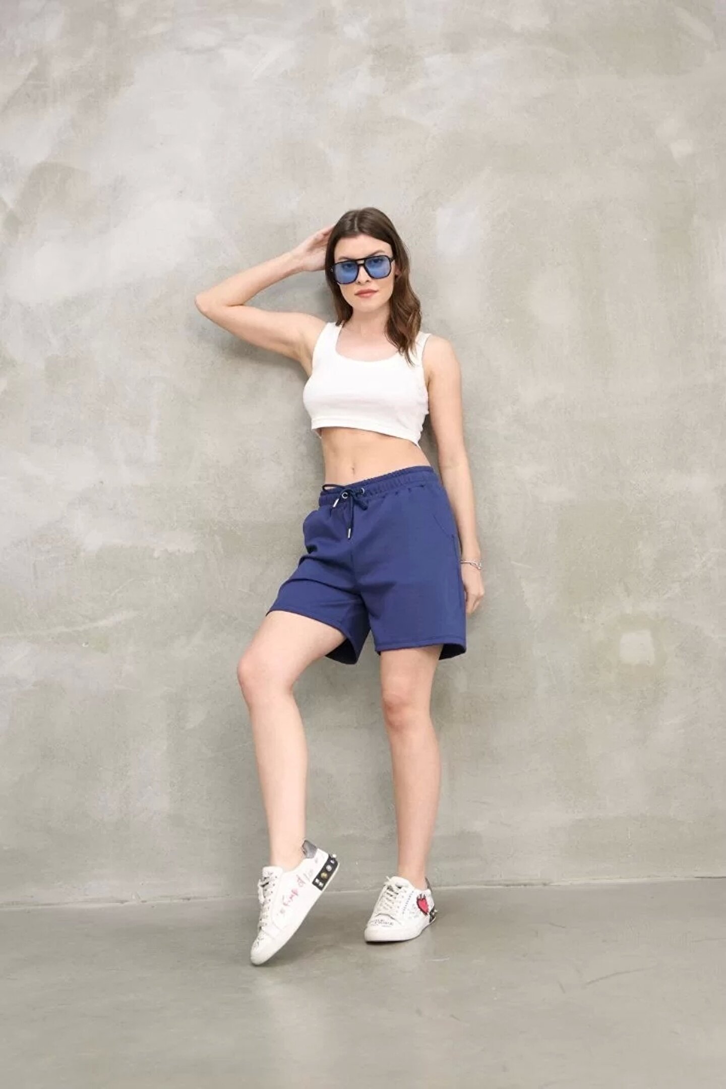mzpkartan Osy Modal Yumuşak dokulu Kumaş Kadın Kısa Şort - Mavi