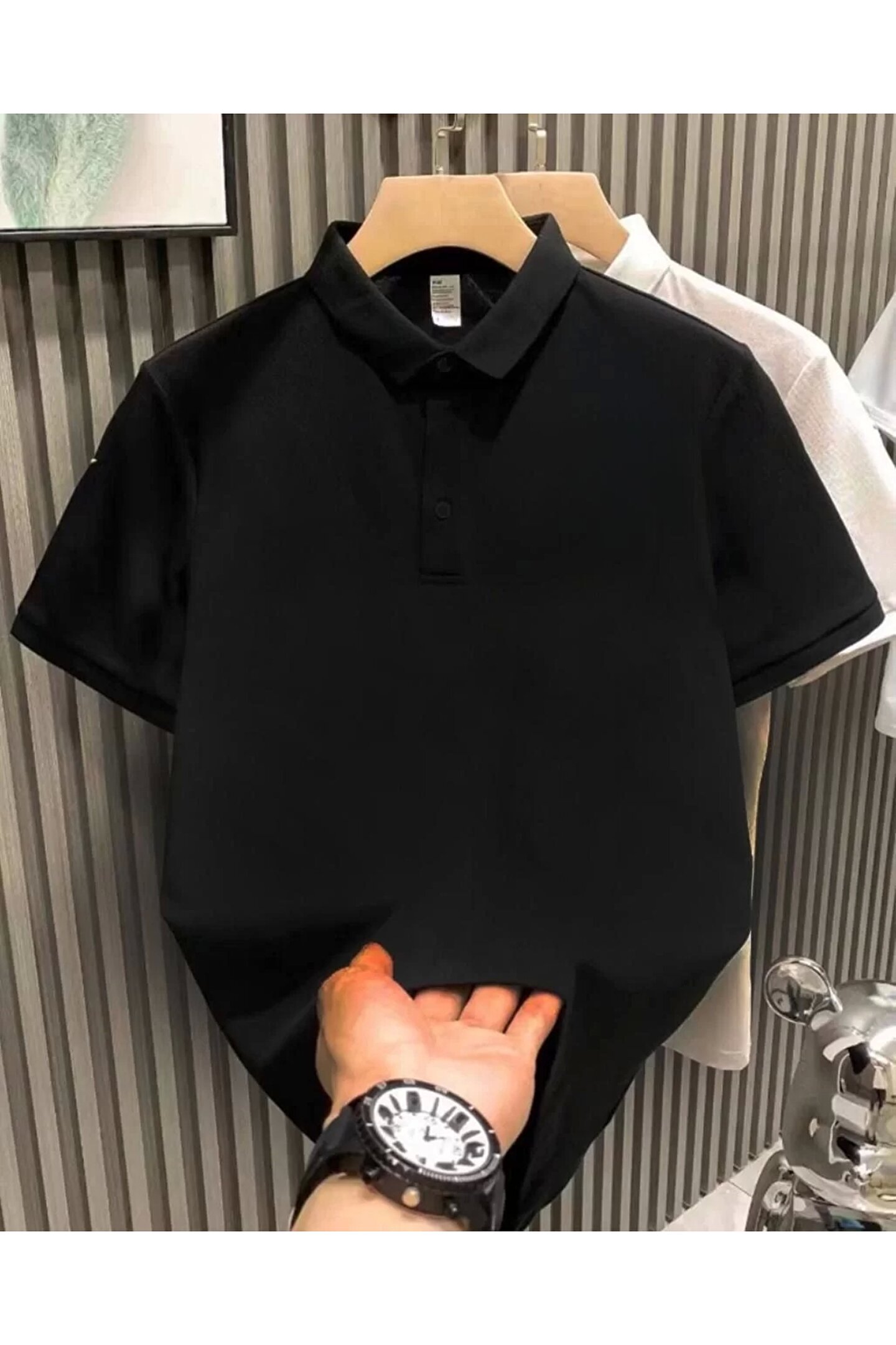 mzpkartan Yakası Düğmeli Yakalı Pike Düz T-Shirt - Siyah