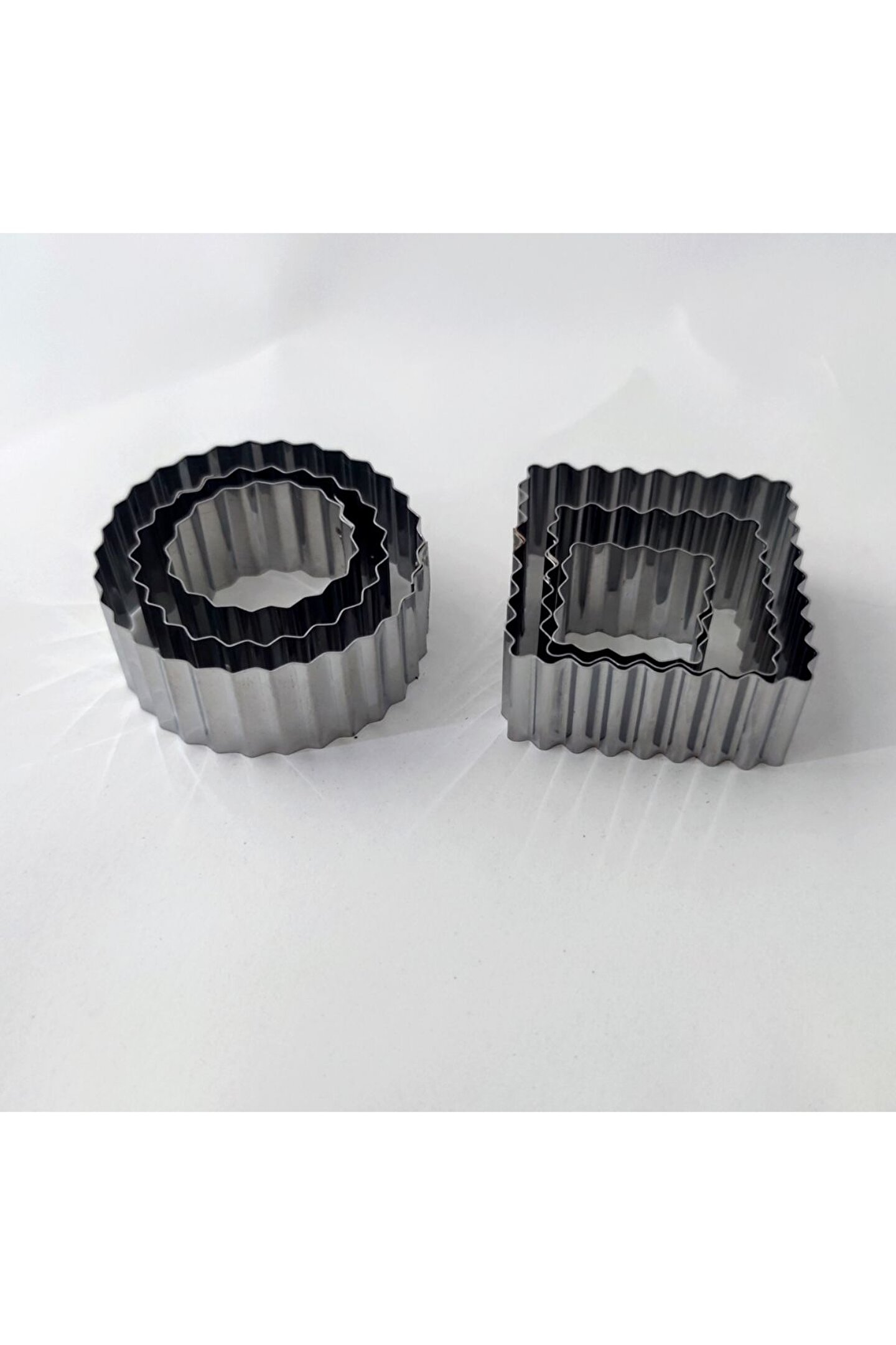 Standart tasarımıyla her ev mutfağına uyum sağlayan, şık ve modern görünümüyle dikkat çeken bu fırın ve kek kalıbı, mutfak dekorasyonunuzu tamamlıyor.; Paslanmaz çelik malzeme kullanımı sayesinde uzun ömürlü kullanım sunuyor, kolay temizlenebilir yapısıyla hijyenik pişirme deneyimi sağlıyor.; Kare ve yuvarlak tırtıklı şekilleriyle farklı ve estetik kurabiye çeşitleri hazırlayabileceğiniz bu set, her zaman lezzetli ikramların kapısını aralıyor.; Altı adet kalıp içeren bu set, birden fazla kurabiye çeşidi hazırlamak isteyenler için idealdir ve zaman kazandırarak mutfakta verimliliği artırır.; Standart boyutta olan bu fırın ve kek kalıbı, çeşitli fırın türleriyle uyumlu olmasıyla geniş kullanım alanına sahiptir; böylece farklı pişirme ihtiyaçlarınıza cevap verir.;