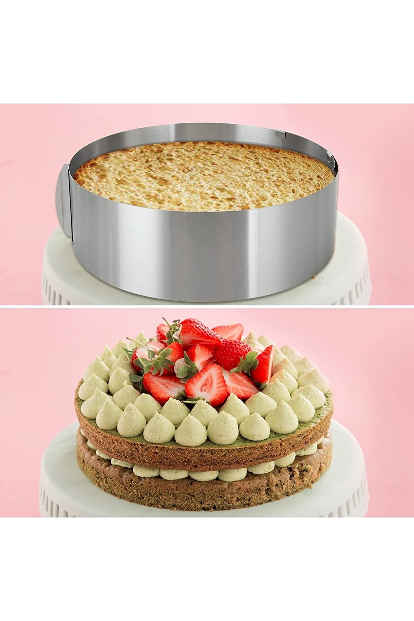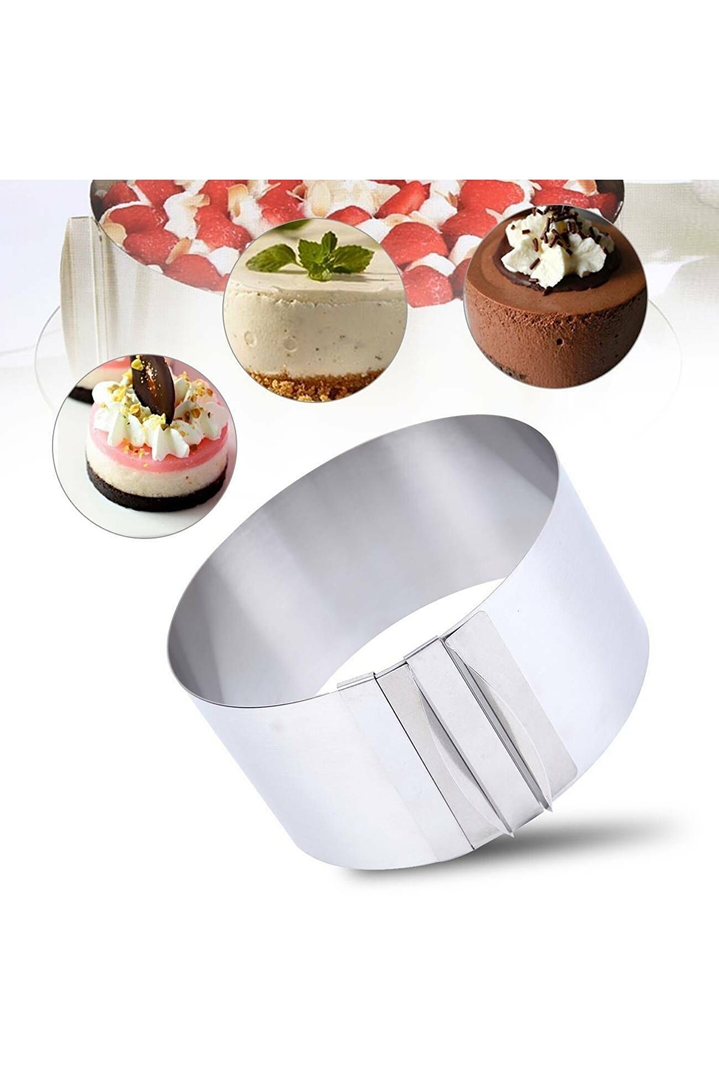 - Paslanmaz çelik malzemesi sayesinde uzun ömürlü kullanım ve kolay temizlik imkanı sunar; - Kelepçeli tasarımı ile keklerinizi ve diğer pişirme ürünlerinizi güvenli bir şekilde kalıba sabitler, böylece pişirme sırasında deformasyon riskini azaltır; - 16cm'den 30cm'ye kadar ayarlanabilir derinlik seçeneği ile farklı boyutlardaki kekler için idealdir; - Pasta sıvama palet bıçağı, keklerinizi ve diğer tatlıları süslemek için mükemmel bir araçtır; 20cm uzunluğundaki bıçağı ile profesyonel sonuçlar elde etmenizi sağlar;