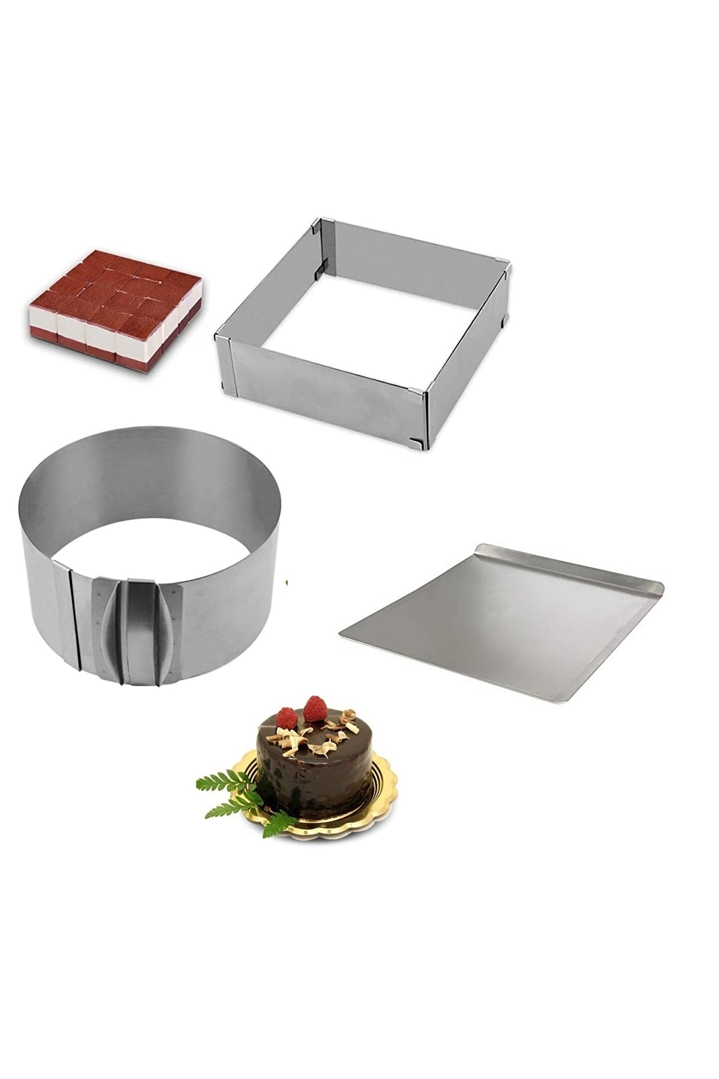 Nar kalıp Narkalıp Yuvarlak Kare Ve Altlık Ayarlanabilir Kek Kalıbı 3 Lü Set