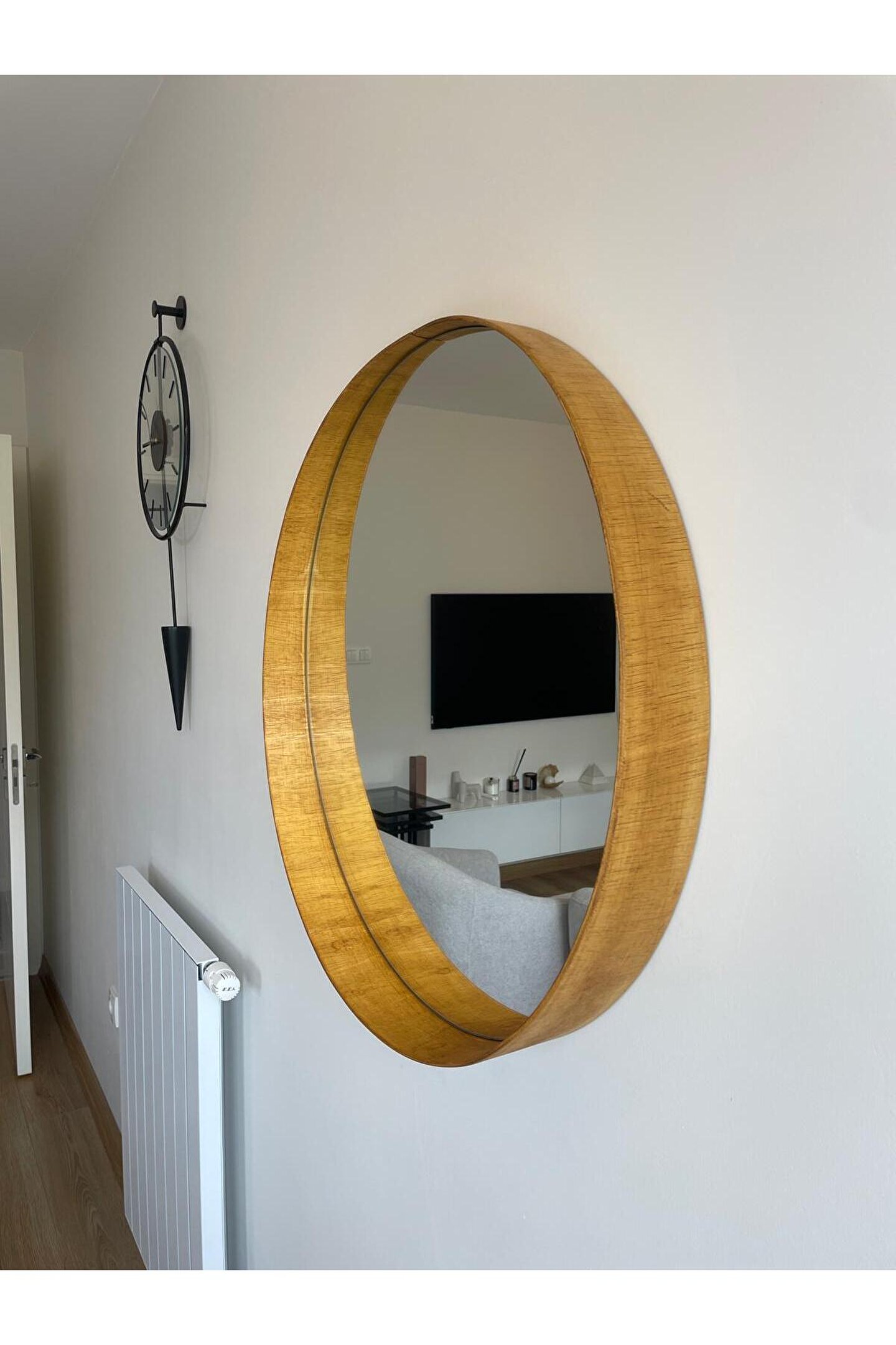 Narkissos Dizayn 80 cm Meşe Ahşap Çerçeveli Dekoratif Kavis Ayna
