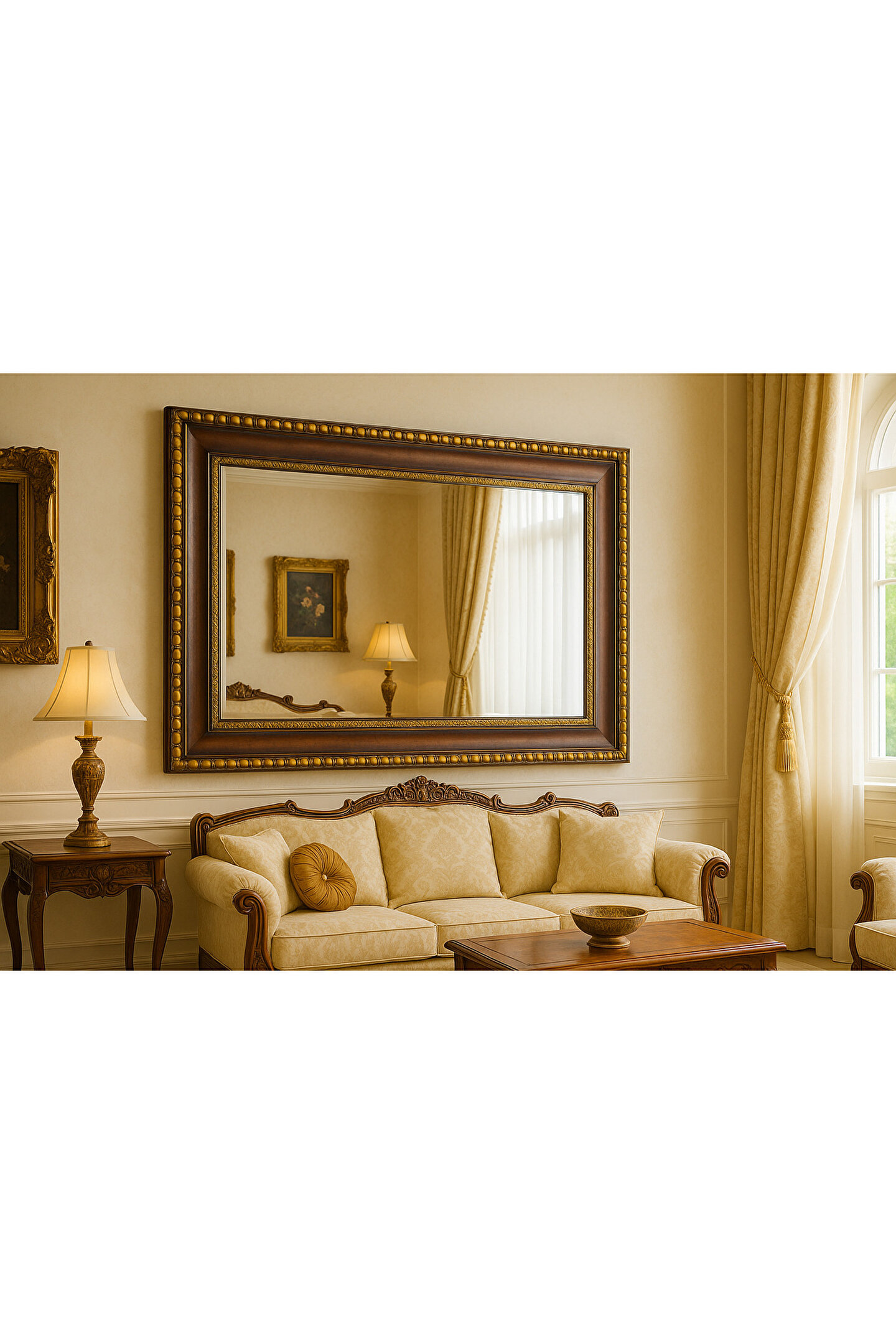 Narkissos Dizayn Kahverengi Gold Altın Varaklı Çerçeveli Ayna 9cm Genişlikte Çerçeve-Gold Ayna-Klasik Ayna-Salon Ayna
