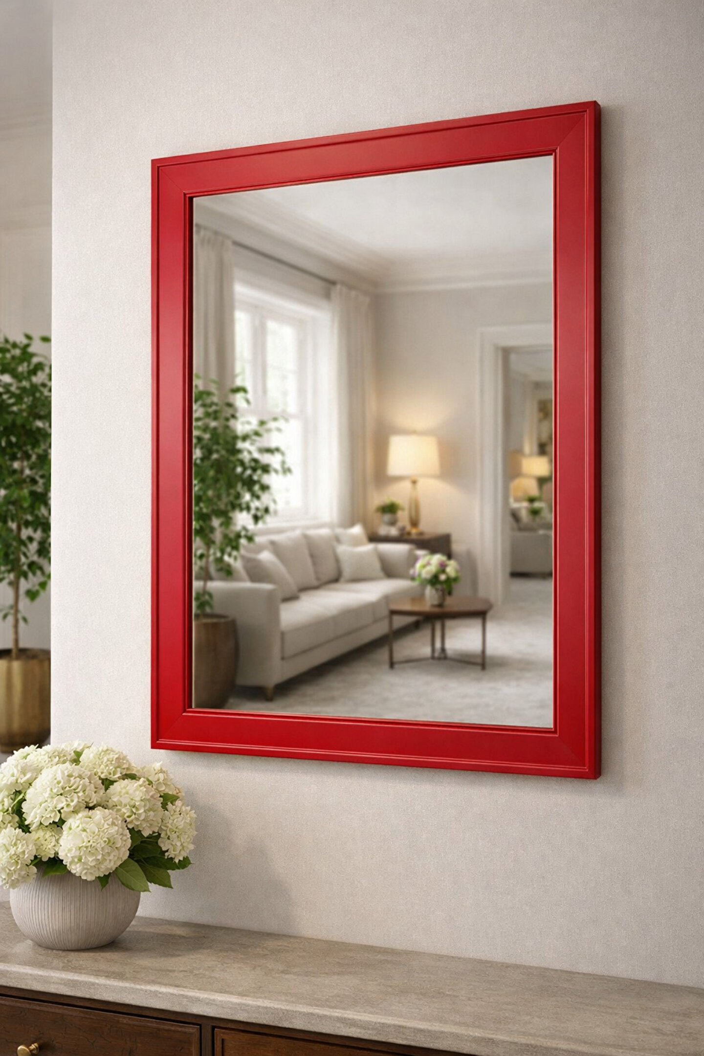 Narkissos Dizayn Kırmızı Çerçeveli Duvar Aynası - Dekoratif Ayna - Özel Ölçü - 5cm Çerçeve Genişliği