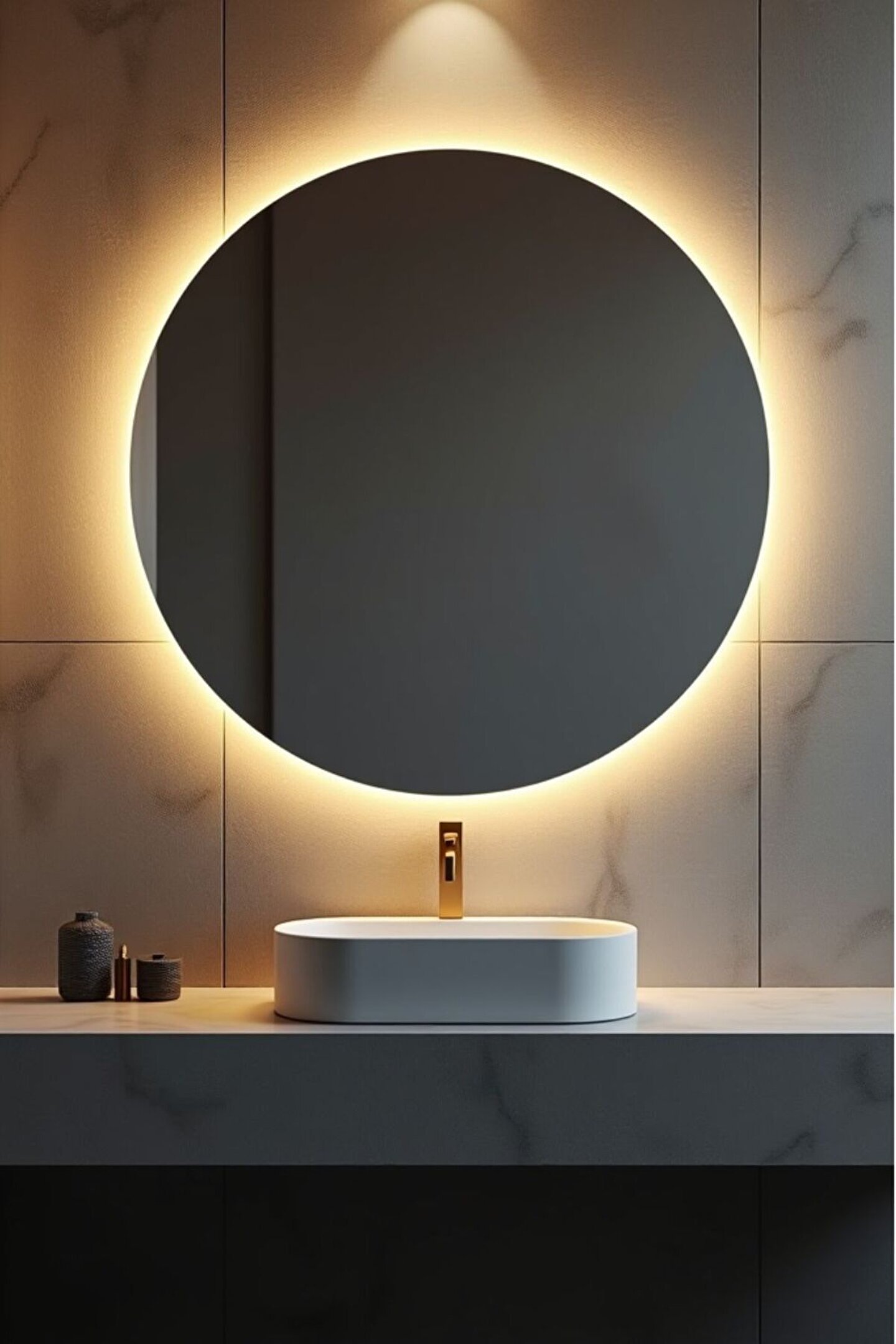 Narkissos Dizayn Pilli Kablosuz Yuvarlak Ledli Ayna