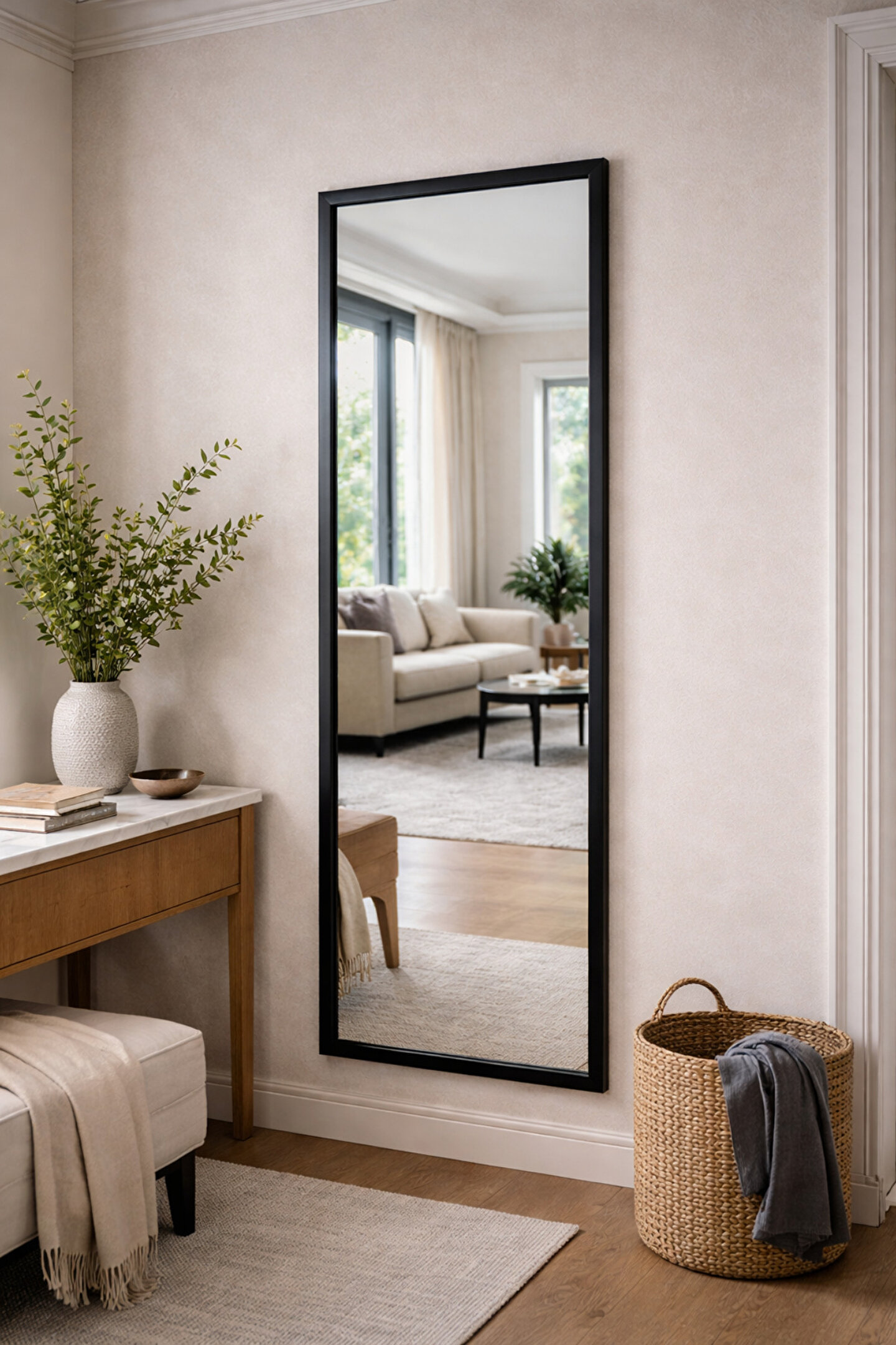 Narkissos Dizayn Siyah Çerçeveli Duvar Aynası & Boy Aynası-Özel Ölçü Seçenekleri-3cm Çerçeve Genişliği