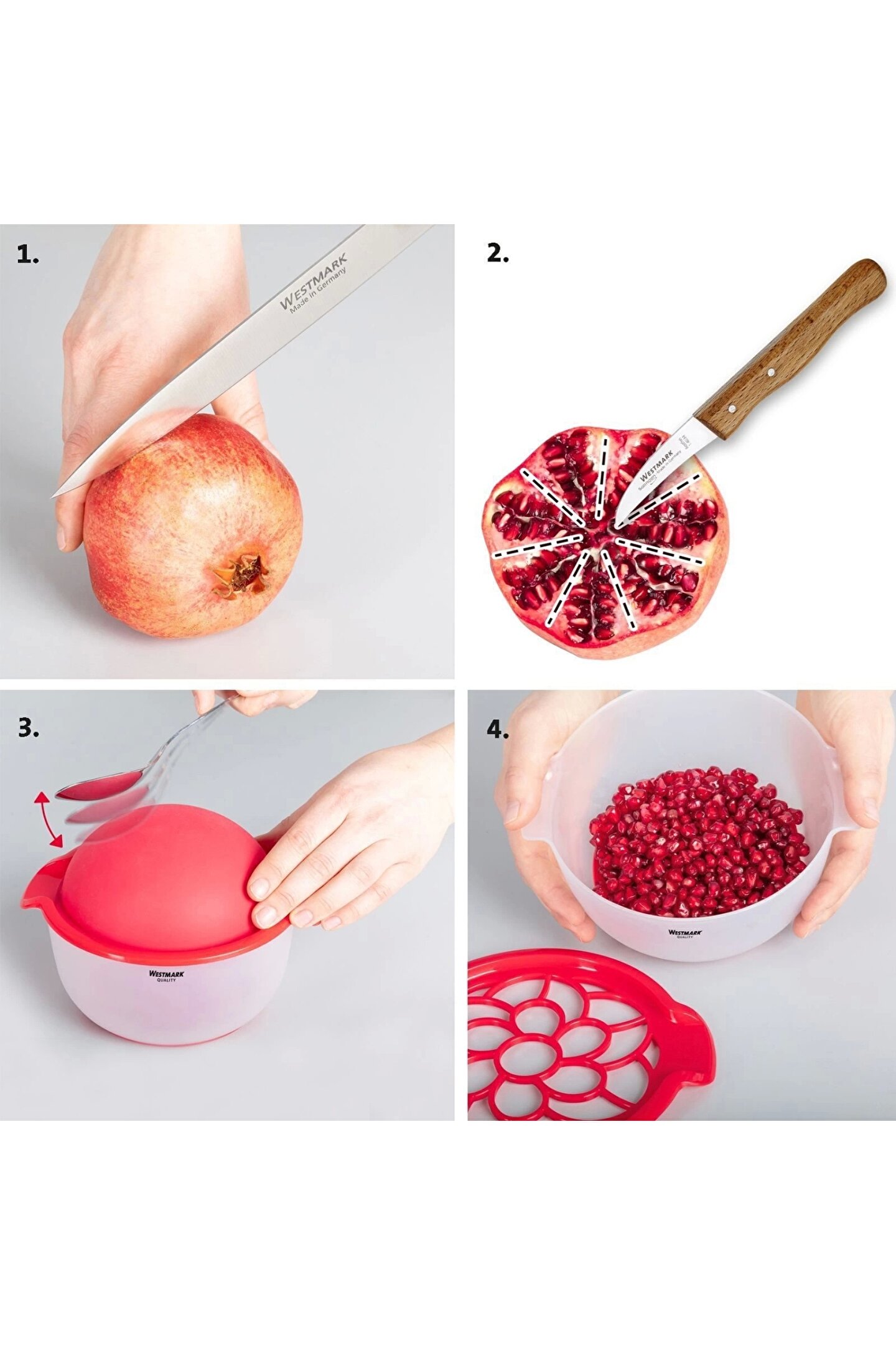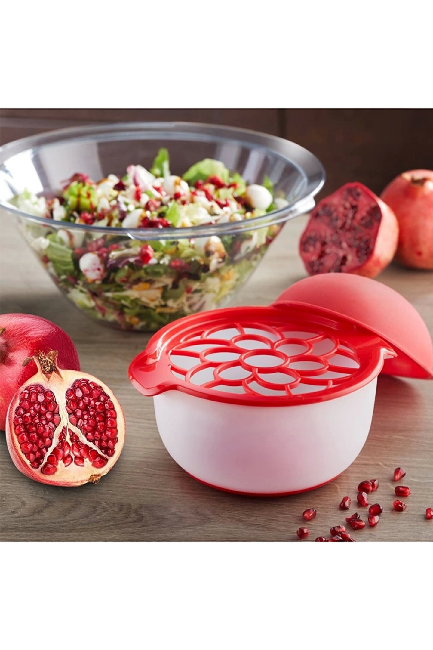 Elek ile donatılmış bu pratik plastik kap sayesinde nar tanelerini ve diğer kabuklu meyveleri, sıçrama olmadan kolayca çıkarabilirsiniz. Kullanım kolaylığı sunan bu ürün, mutfakta verimliliği artırırken hijyenik ve zahmetsiz bir deneyim sağlar.