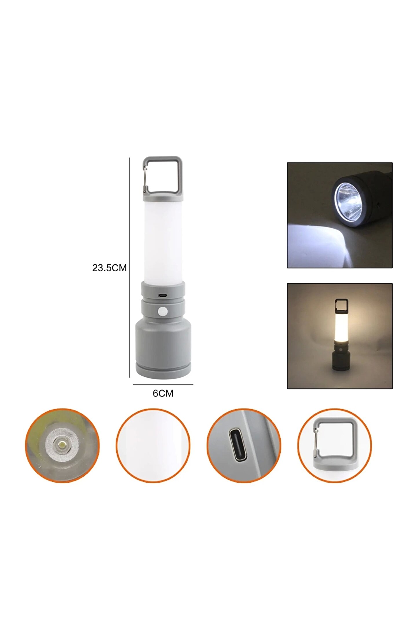 TAŞINABİLİR KAMP FENERİ BEYAZ - SARI TYPE-C ŞARJ GİRİŞLİ 60X235MM CH-23051 (4767)