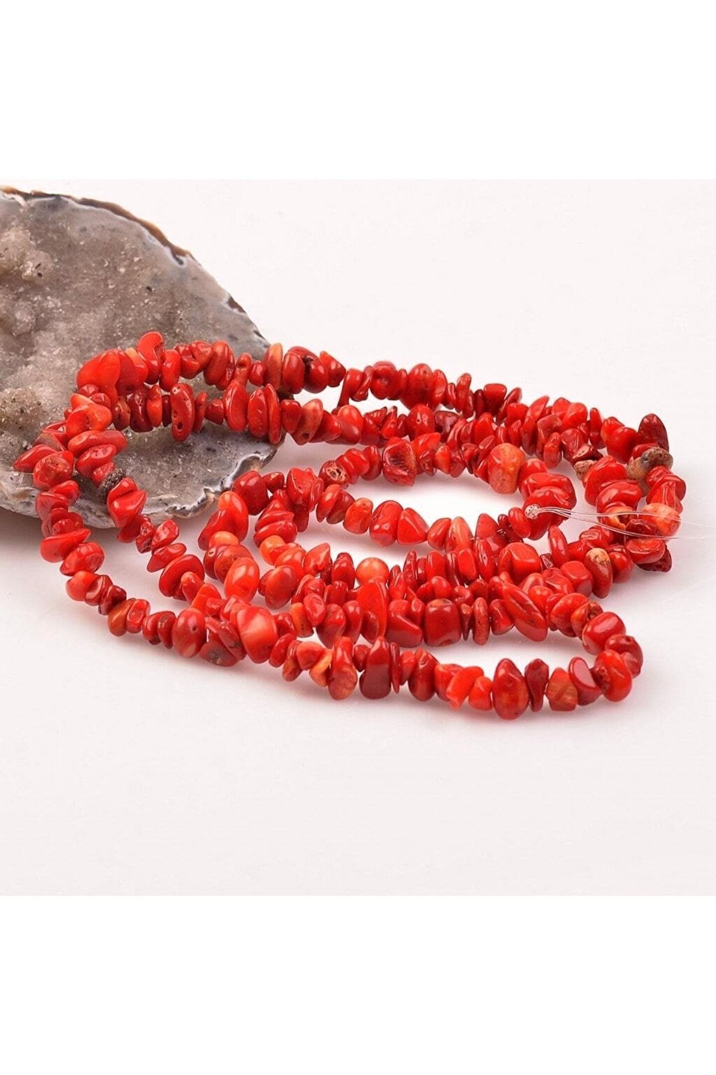 Doğal taş kullanımı sayesinde her bir parça benzersiz ve otantik bir görünüm sunar; Kırmızı mercan taşı, kolyenin şıklığını ve zarafetini artırarak dikkat çekici bir aksesuar oluşturur; 80 cm uzunluğundaki bu dizi, hem günlük kullanım hem de özel günler için ideal bir seçenektir; Orjinal doğal taş dizi, el yapımı olmasıyla kaliteyi ve özgünlüğü ön plana çıkarır;