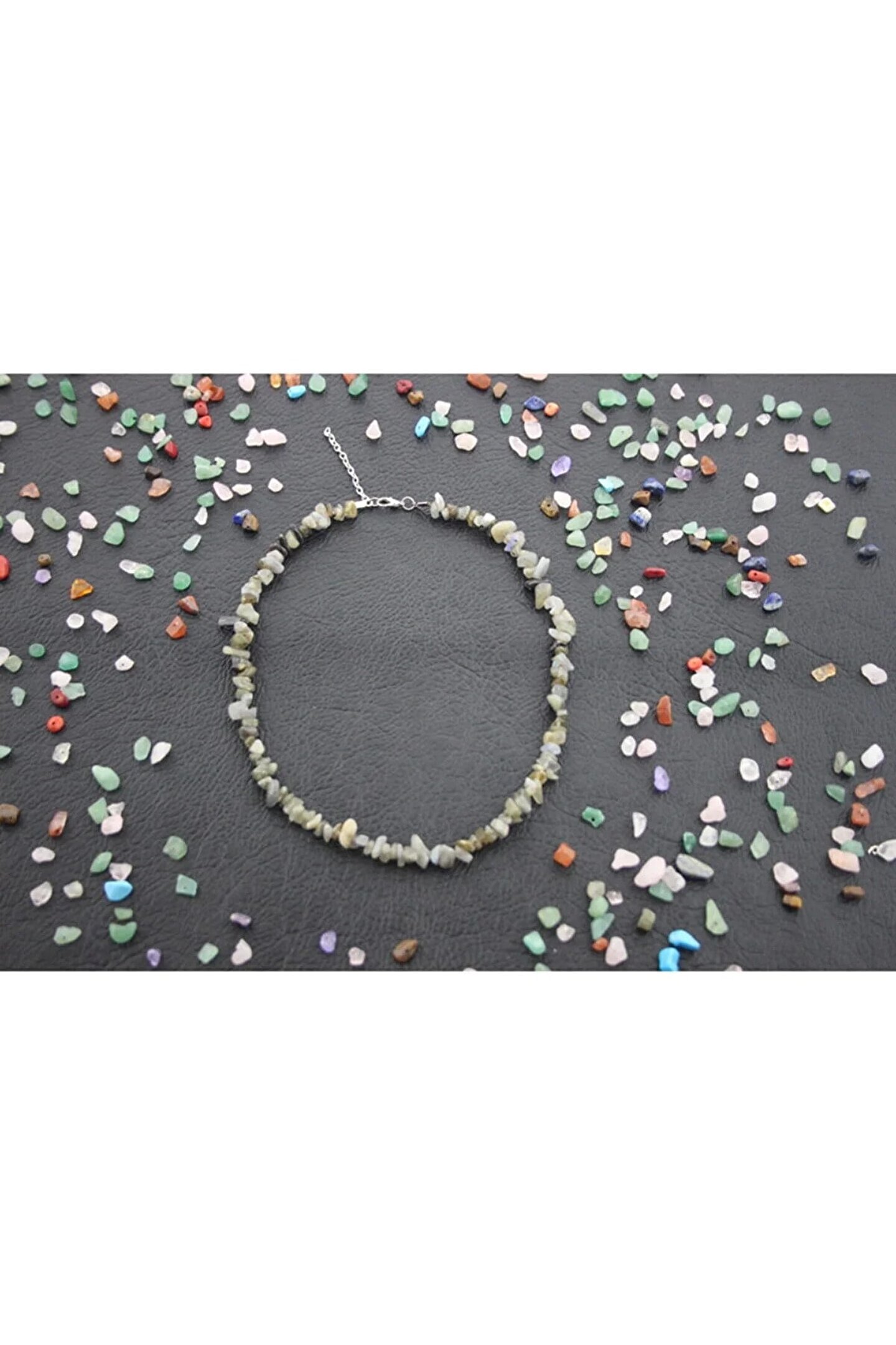 Doğal taş kullanımı sayesinde her kolye benzersiz ve otantik bir görünüm sunar; Labradorit taşı, enerjiyi dengelemeye yardımcı olan ve pozitif titreşimler yayan bir mineraldir; Kolyenin kırıktaş tasarımı, modern ve şık bir stil oluştururken aynı zamanda doğallığı ön plana çıkarır; Taşın doğal yapısı, kolyenin hem günlük kullanım hem de özel günlerde tercih edilebilir olmasını sağlar;