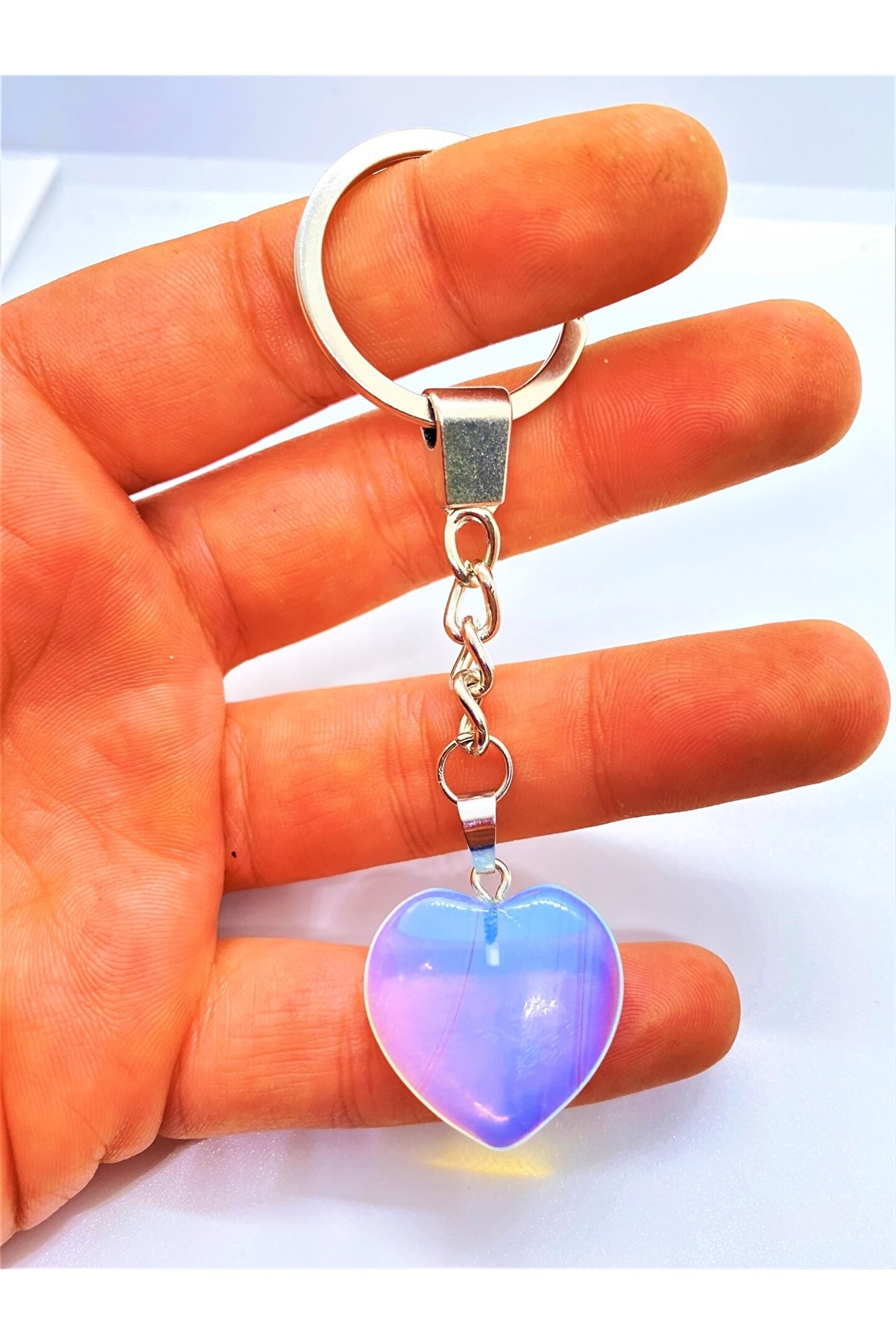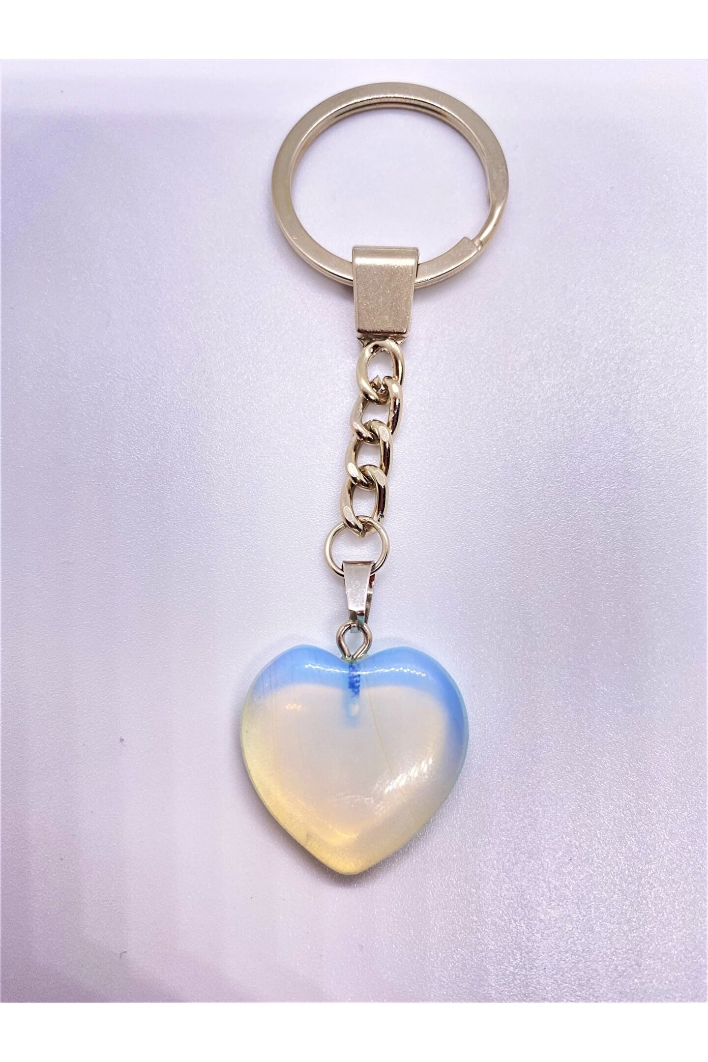 NATURALİM Opalit Taşı Doğal Taş Kalp Anahtarlık Hediyelik