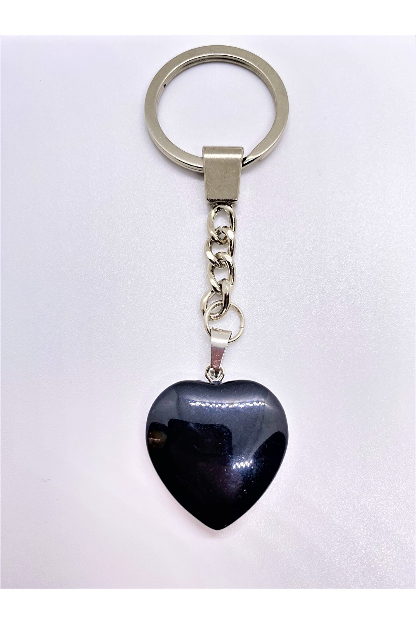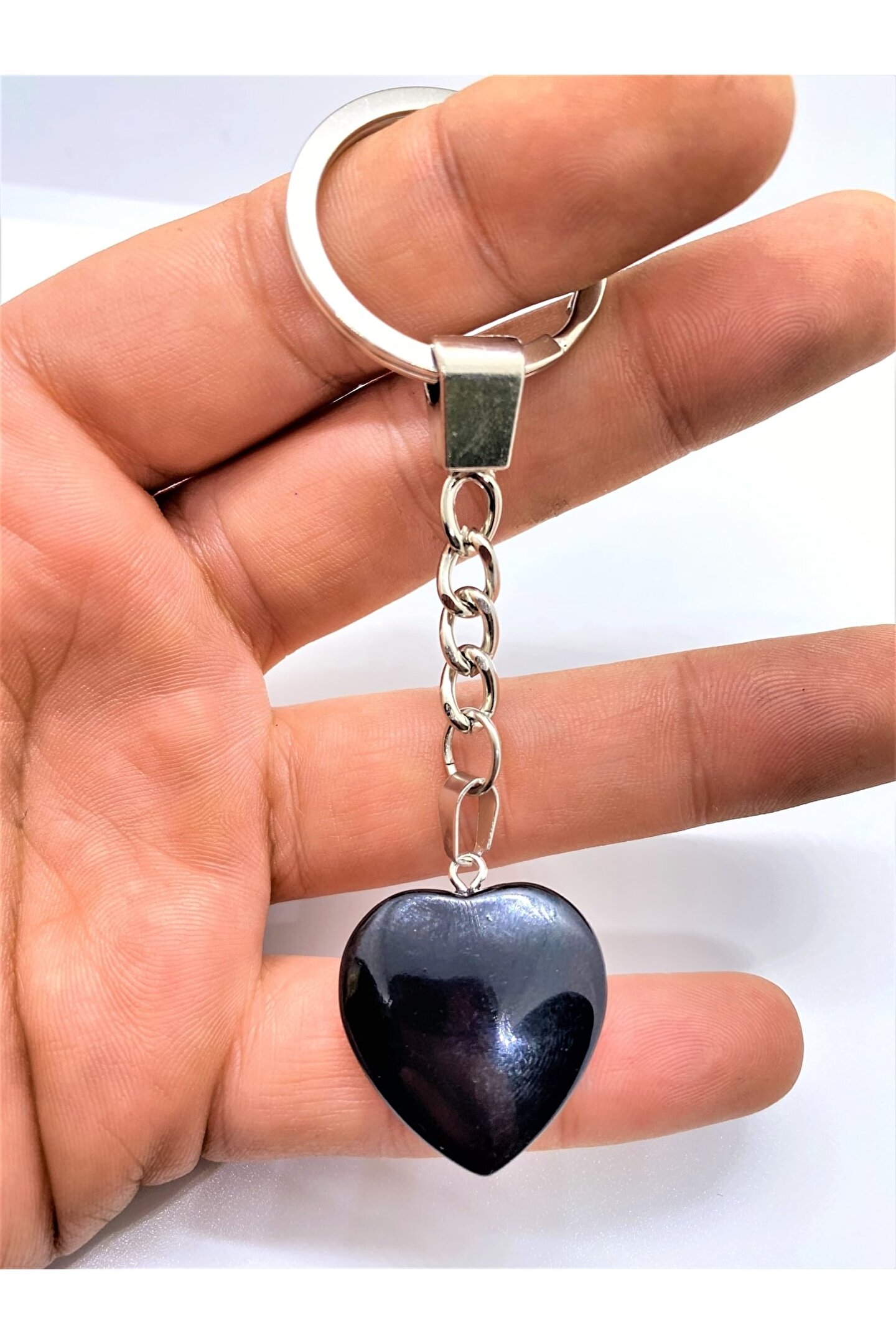 NATURALİM Siyah Onix Taşı Doğal Taş Kalp Anahtarlık Hediyelik