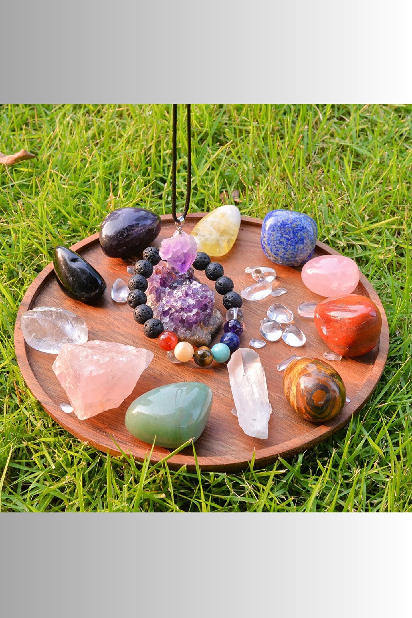 12 adet çakra Doğal Taş , 1 adet Ametist ham orta boy doğal taş, 1 adet bileklik ,1 adet ametist kolye gönderilir. ortalama 2-4 cm arasında taşlardır . ametist taşı 4-8 cm arasıdır . ; Korkaklığı, nazara, karabasana ve uykusuzluğa iyi geldiği söylenir metabolizmanın da düzgün çalışmasına da faydası vardır. · Bedende değerek kullanımda sıcaklık hissi verir ve rahatlamaya yardımcı olduğu söylenir. ;