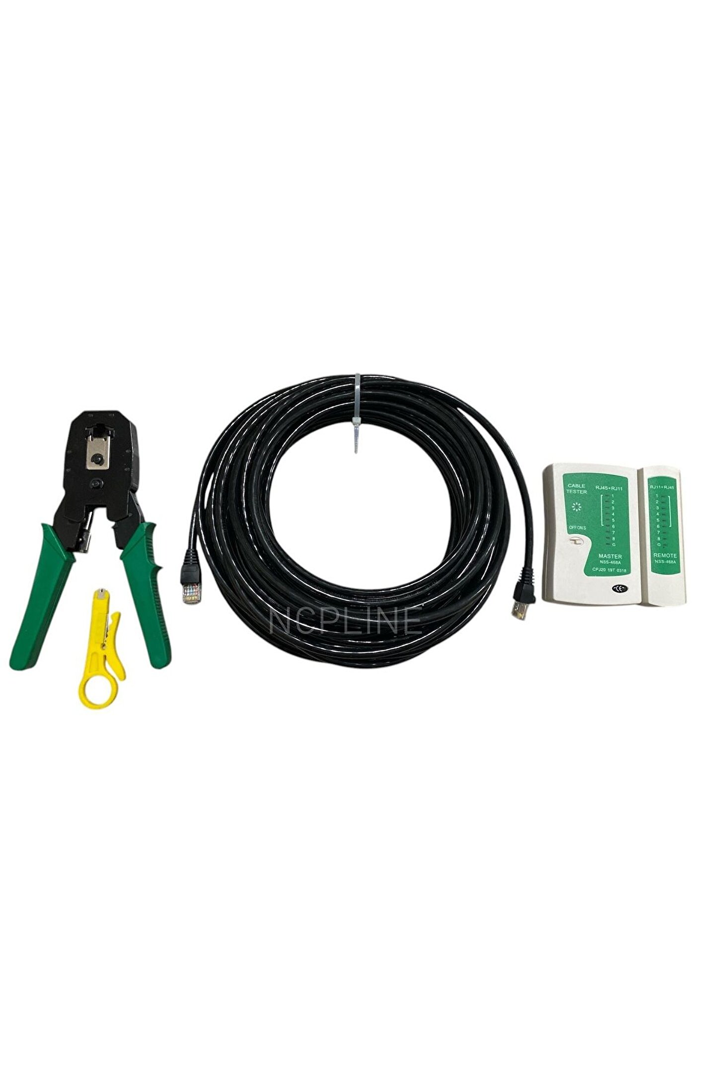 15 METRE 15M İÇ ORTAM SİYAH İNTERNET KABLOSU SIKMA PENSESİ TEST ALETİ CİHAZI 5 ADET RJ45 UÇ BİRLİKTE