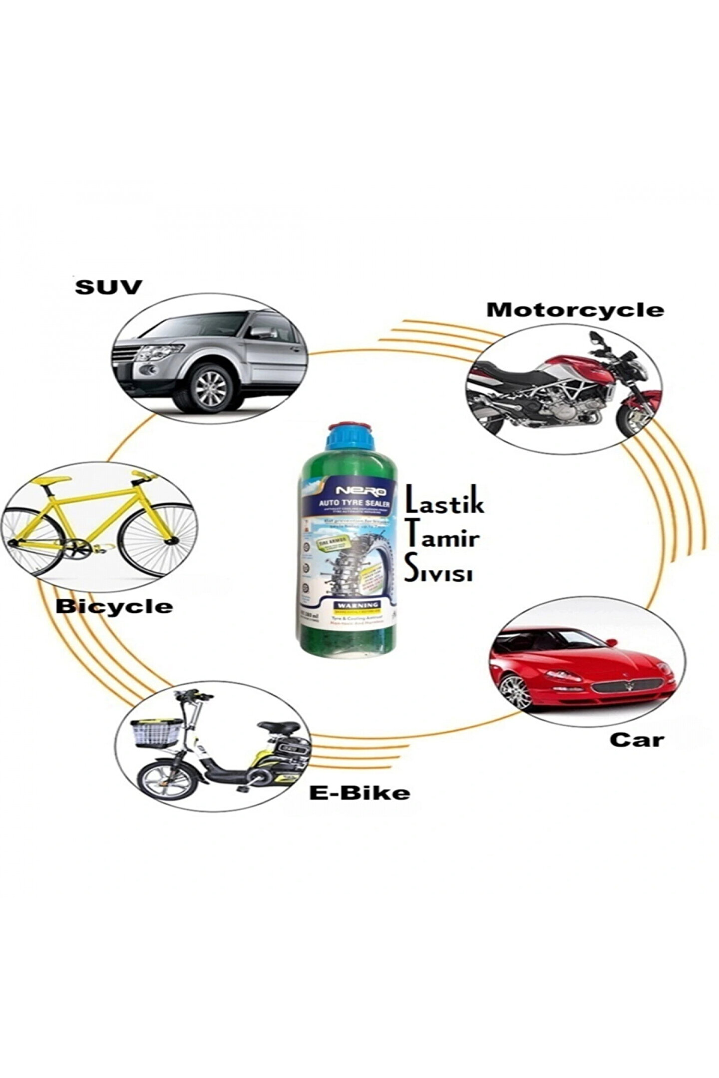 Lastik Tamir Kiti, Lastik Tamir Sıvısı 500 mL Her marka model araç Motosiklet Otomobil Bisiklet Kamyon İş makinası İçin uygundur Lastik içine Şişirmeden önce sıkılır