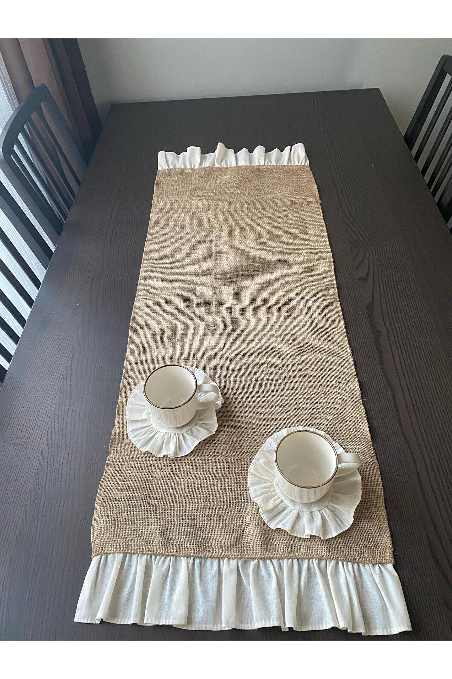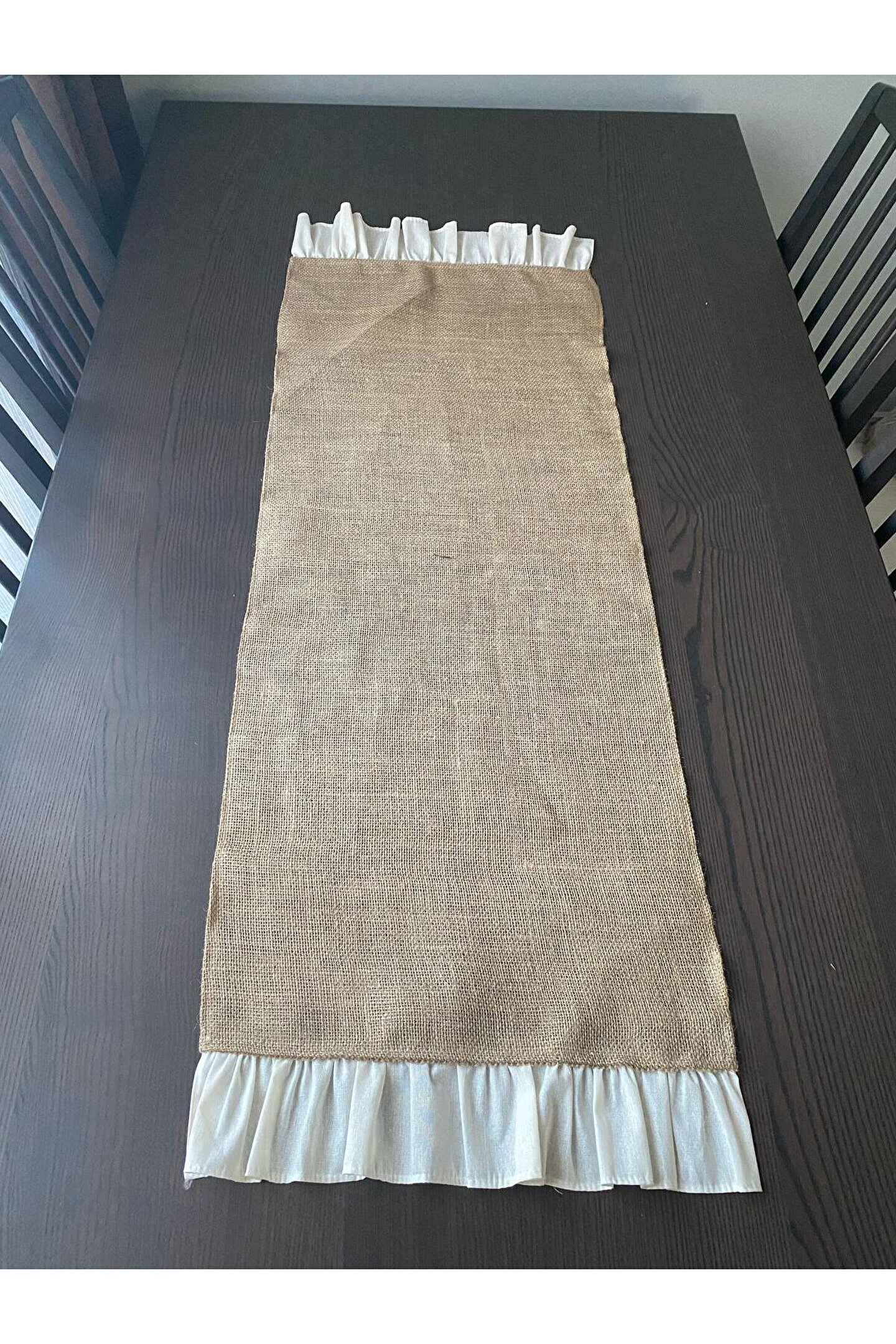 - Doğal jüt malzemesinden üretilmiş, dayanıklı ve uzun ömürlü kullanım sunar.; - 40x120 cm boyutlarındaki dikdörtgen tasarımı ile mekanınıza şık bir görünüm katar.; - Tek parça halinde gelen bu runner, kolayca yerleştirilebilir ve pratik bir dekorasyon seçeneği sağlar.; - Fırfırlı detayları ile modern ve estetik bir dokunuş eklerken, oturma alanlarınıza sıcaklık katmayı başarır.; Ürün tek parça 40x120 olan runner olarak gönderilmektedir.; Görseldeki diğer ürünler dekor amaçlıdır.;