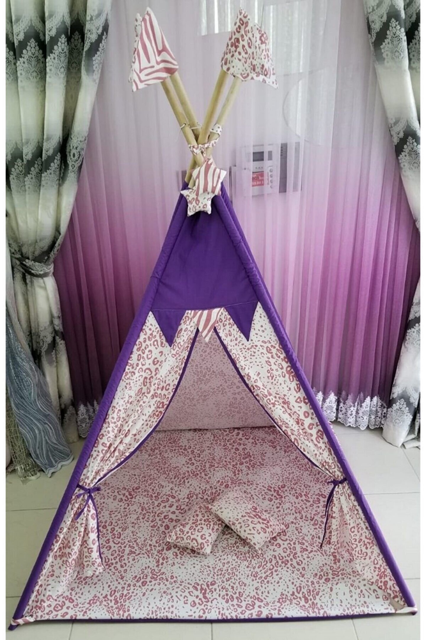 Kızılderili Oyun Çadırı Sabitleme Aparartı Hediyelidir Lila, Kırmızı Leopar