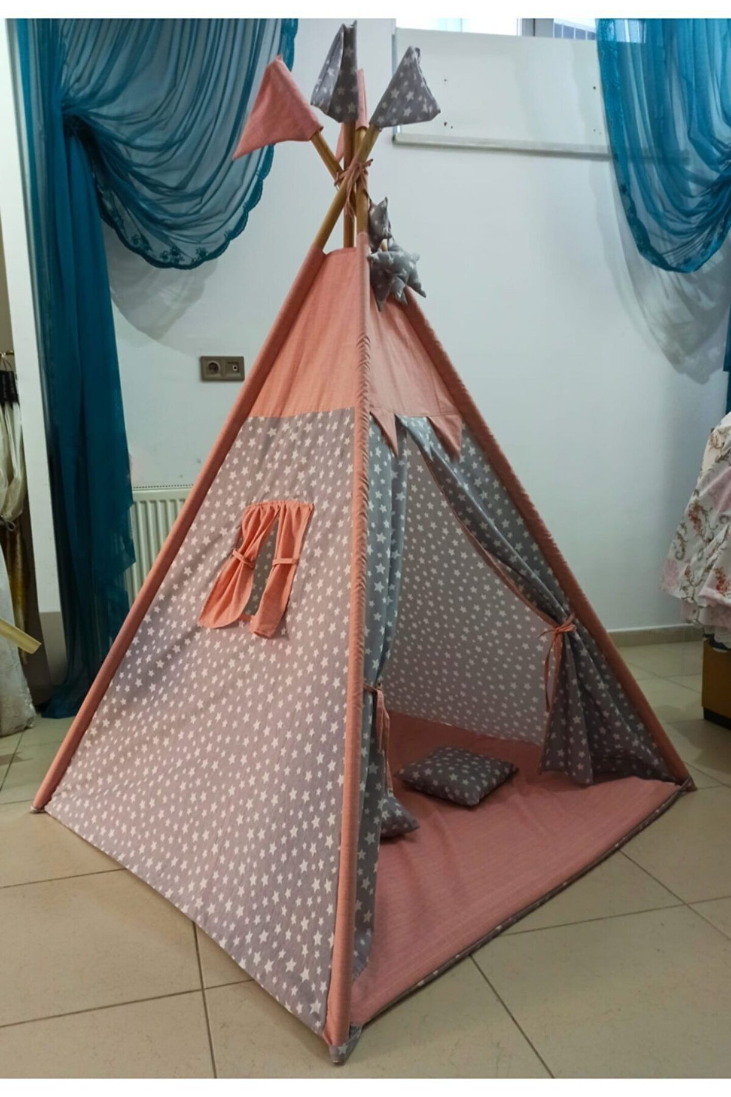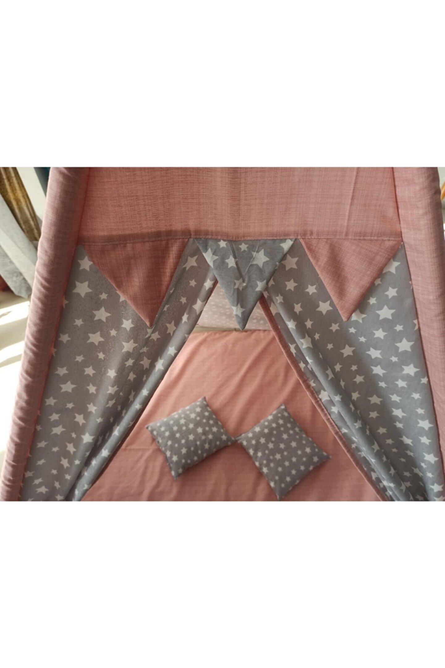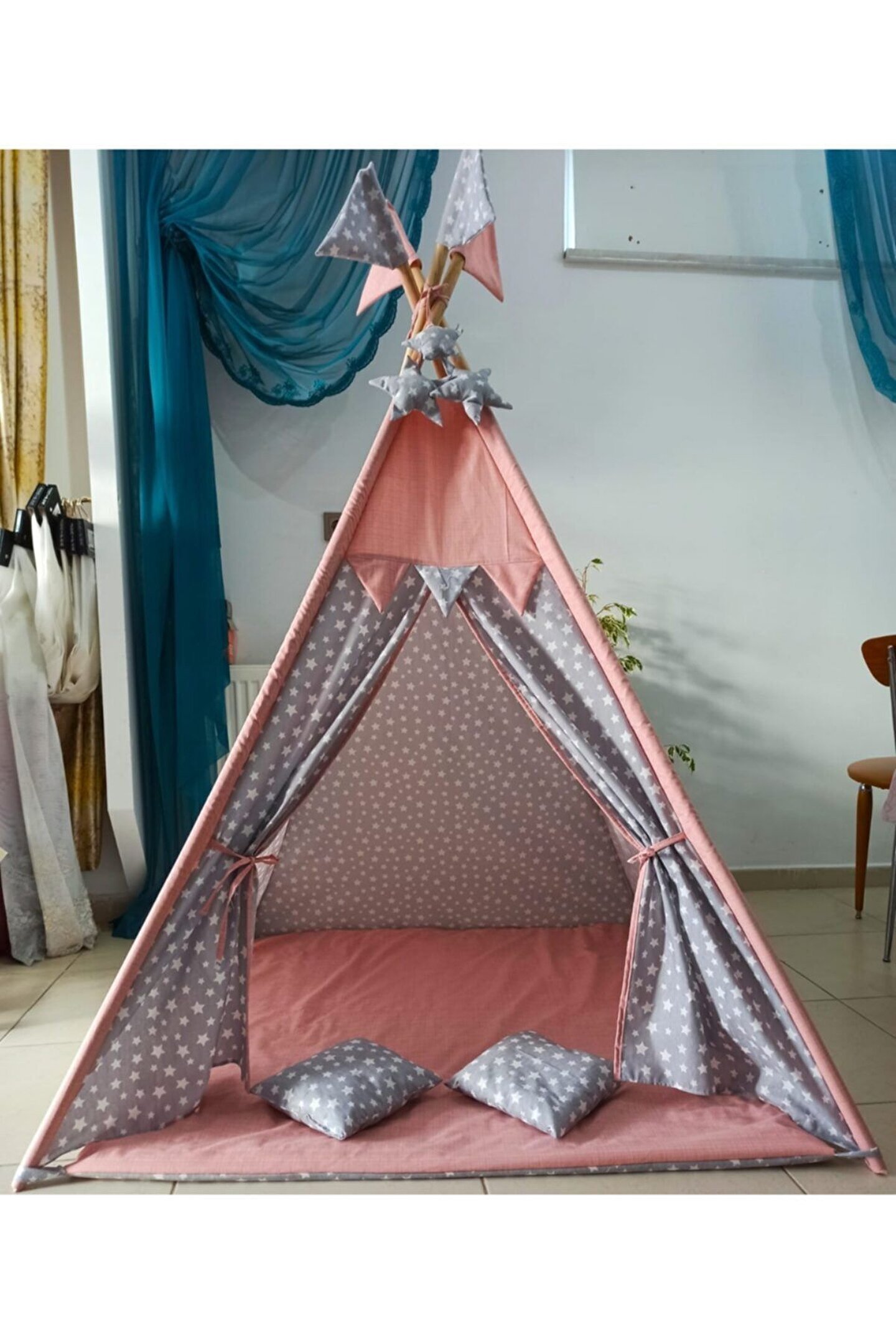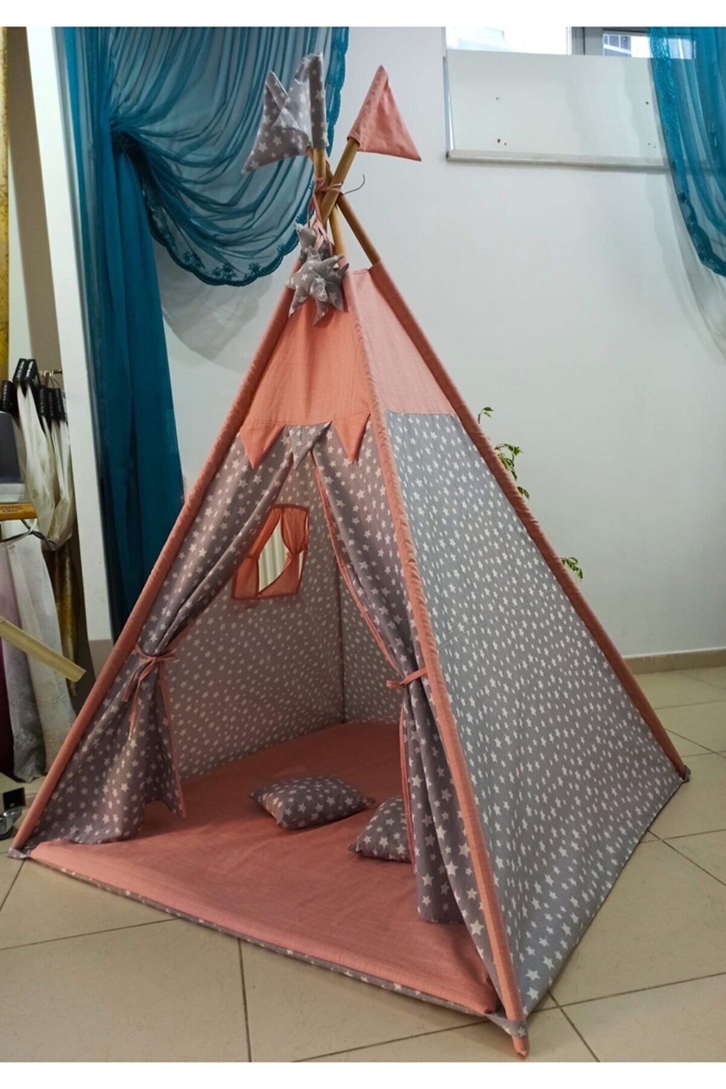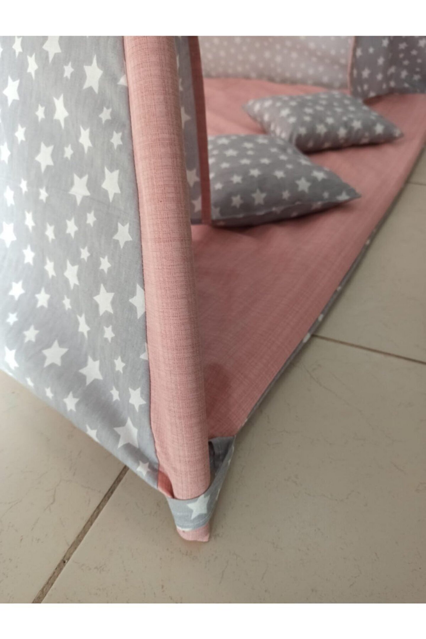 1.20*1.20*2.00 cm kolay kurulum, çift taraflı alt minderi ayrıca seyyar olup oyun minderi olarak da kullanıla bilir. ; - 3 Yaşından itibaren 8 yaşına kadar kullanabileceği, kendine ait özel bir oyun ve dinlenme alanı - Oyun Çadırının 1 Kapısı ve 1 Penceresi bulunmaktadır - Gürgen ağacından iskelet, dış kısmı 100% pamuklu kumaş, nefes alır, yıkanabilir kumaşlardan imal edilmiştir. ; - Evinizin veya bahçenizin bir köşesine çocuğunuza ait oyun alanı oluşturmayı düşünen anne-babalar hiç tereddüt etmeden oyunun keyfini çocukları ile birlikte yaşayabilir. ; - Çocukların hayal güçlerini ortaya çıkararak, hayal dünyasını geliştirir. ; - Evde çocukların yaratıcılığını güçlendirir. ; - Çadırda arkadaşları ile oyunlar oynayarak sosyal gelişimine katkı sağlar. ; - Arkadaşları ile birlikte hareket etme, paylaşma ve işbirliği olgularını geliştirir. ; - Oyun çadırında birlikte kitap okuyarak, resim yaparak birlikte güzel vakit geçirmenin tadını da çıkarabilirsiniz.;