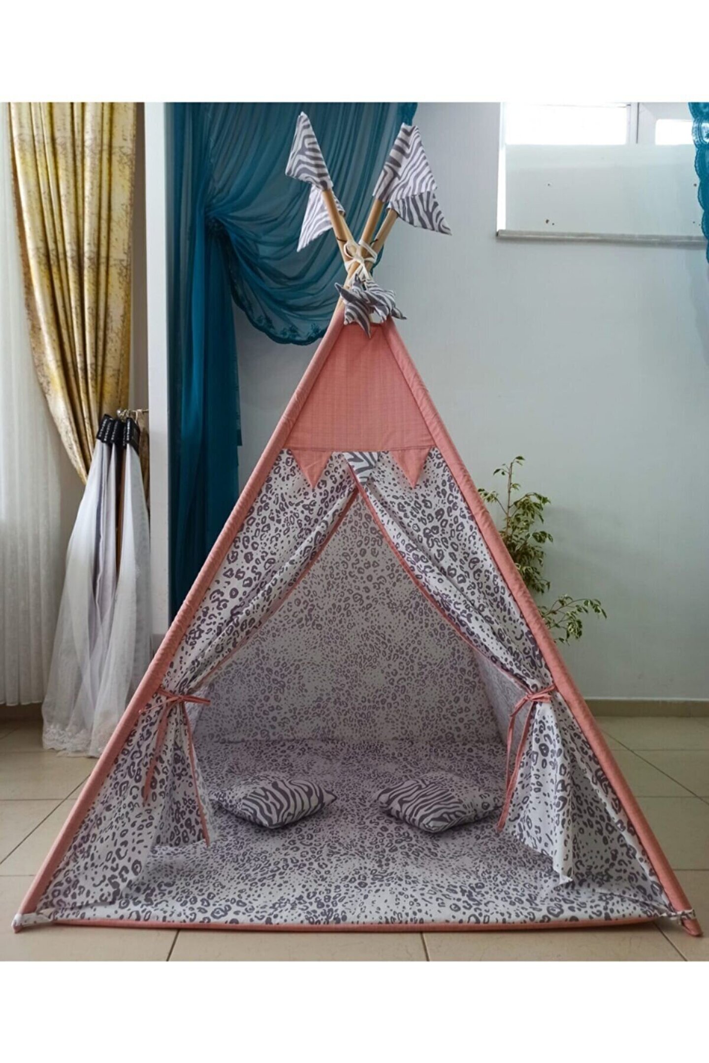 Kızılderili Oyun Çadırı Sabitleme Aparartı Hediyelidir Pudra, Gri-leopar