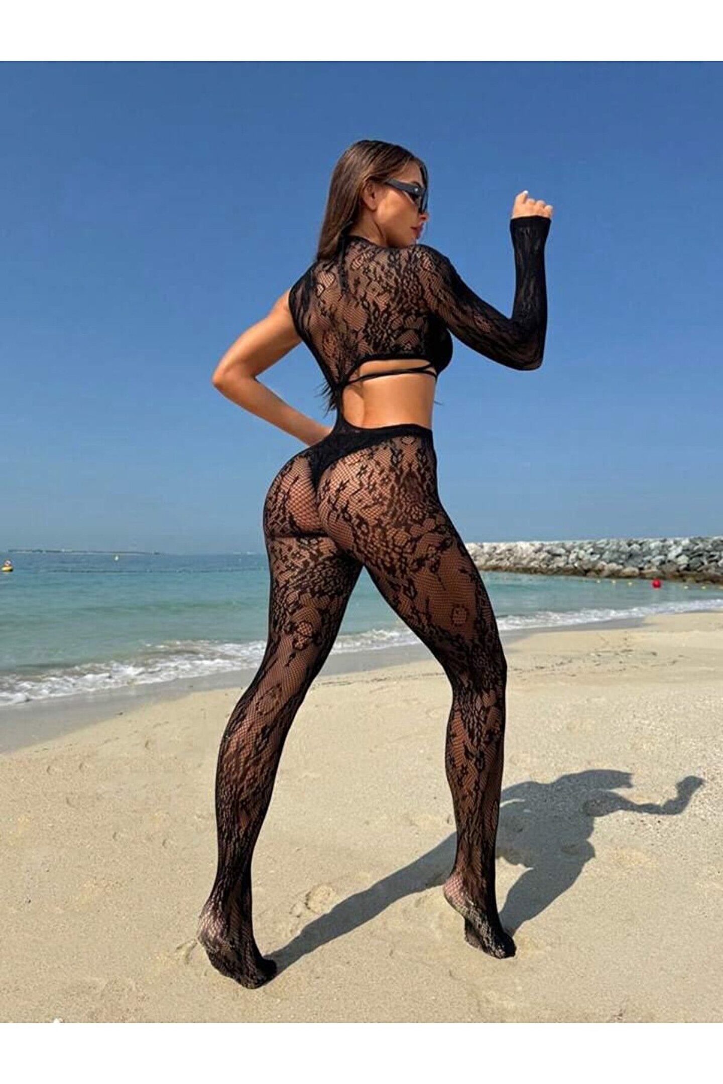 Nivolia Douce Taşlı Dantel Detaylı Siyah Tüm Boy Çorap
