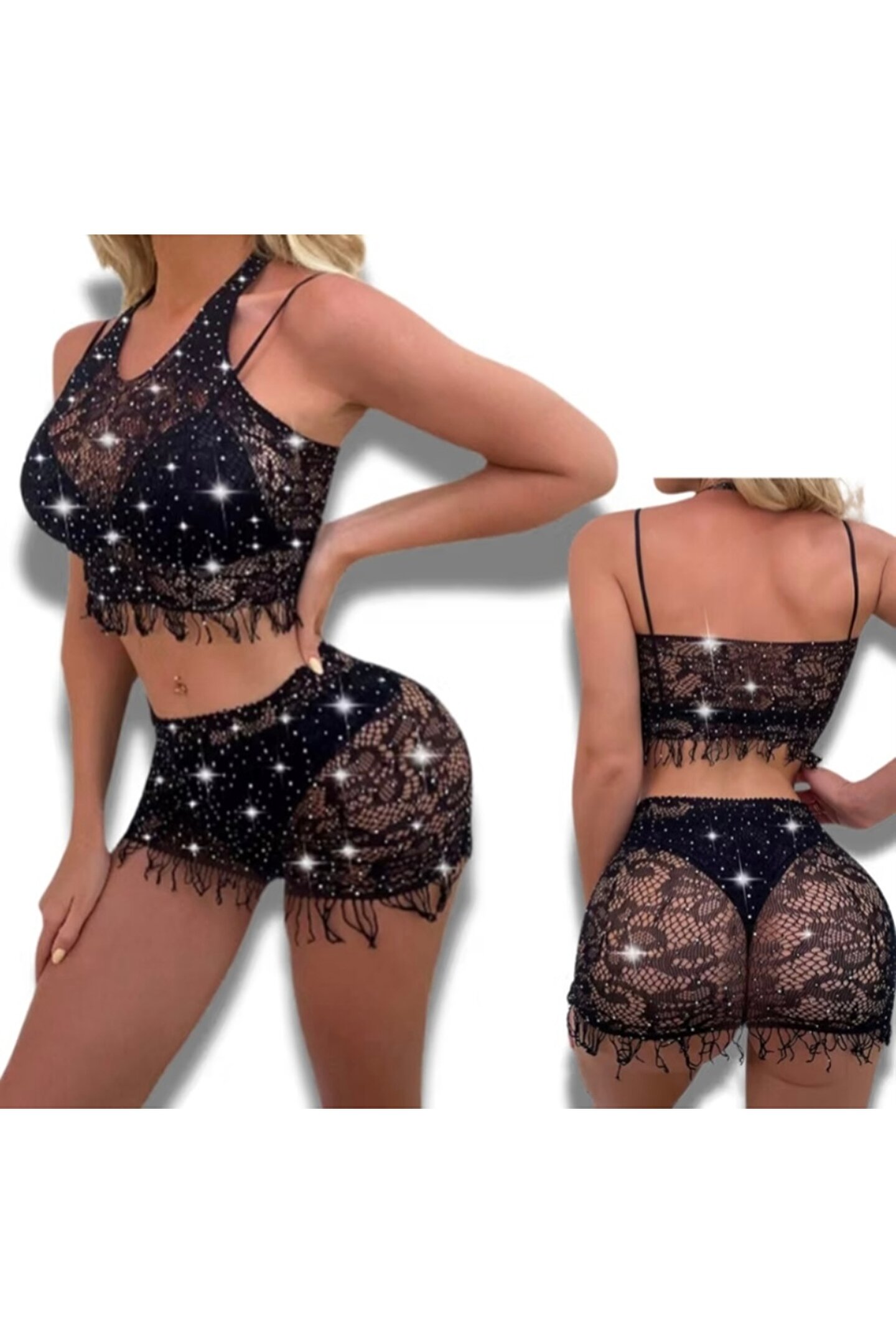 Nivolia Douce Taşlı Siyah Dantel Alt-Üst Takım