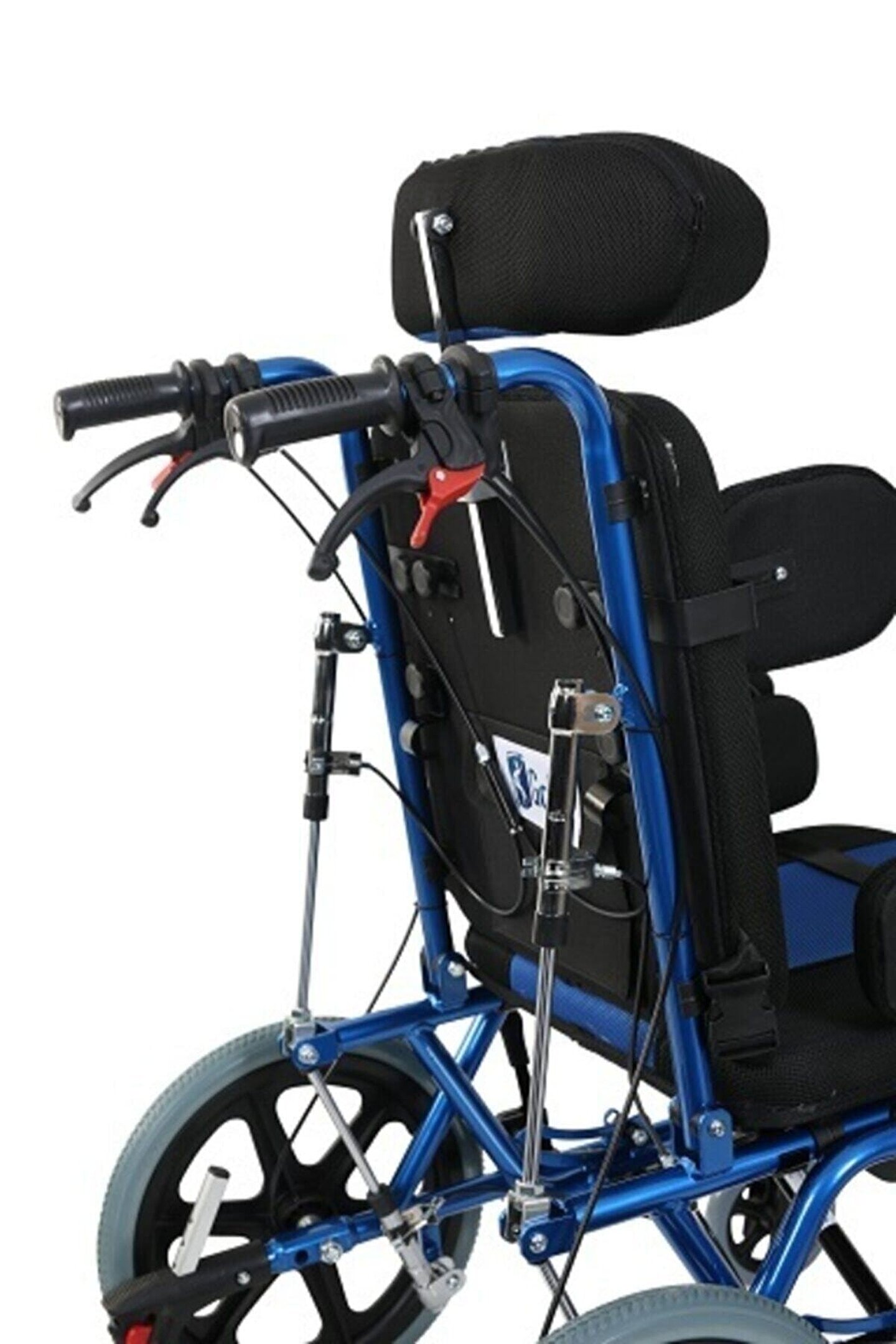 Pediatrik Selebral Palsi Tekerlekli Sandalye Cerebral Palsy ve postür bozuluğu olan kullanıcılara özel tasarlanmıştır; Oturma yeri genişliği, derinliği, ayaklıklar ve sırtlık yüksekliği çocuk kullanıcılara uygun tasarlanmıştır; Uzun süreli kullanımlarda kullanıcı rahatlığı göz önünde bulundurularak tasarlanmış sırtlık kısmı 160° yatırılarak şezlong pozisyonu alabilmektedir; Kullanıcının baş yapısına uygun ergonomiklikte pozisyonlandırılabilir ve gerektiğinde başı sabitlemek için kemeri bulunan bir başlığa sahiptir; Sırtlık kısmına monte ve ayar imkanı sağlayan gövde tutucuları kullanıcının gövdesini dik pozisyonlandırmaya yarar; Kullanıcının vücut tipine göre pozisyonlandırılabilir bacak arası takozu kullanım esnasında kaymayı engeller; Ayrıca göğüs kemeri ile de kullanıcının sabit pozisyon alabilmesi desteklenir; Kullanıcı isteğine göre oturma yeri 3°; 22° arası tilt olma özelliğindedir; Çıkarılabilir kolçaklar kullanıcının yatak, araba vb; alanlara transferini kolaylaştırır; Ayrıca kolçaklar 5 cm dışa açılarak oturma yerini genişletilebilir özelliktedir; Çıkarılabilir ayaklıkları sayesinde asansör vb; dar alanlarda ekstra manevra kabiliyeti sağlar; Ayaklıklar kullanıcı konforu düşünülerek, bacaklarını ileri doğru uzatabilmesine olanak sağlamak için 90° kaldırılabilir olarak tasarlanmıştır; Ayaklık ve baldırlık kısımları kullanıcı boyuna göre ayarlanabilir özelliktedir; Katlanabilir gövde yapısı taşıma ve depolama kolaylığı sağlar; Basamak atlatma çubuğu, el tutaçları ve refakatçi frenleri sayesinde refakatçi kullanımına uygundur; Eğimli alanlarda ve şezlong pozisyonunda kullanımı sırasında kullanıcının geriye düşmesini engelleyen anti; tipper tekere sahiptir; Oturma Yeri Genişliği : 38 cm Oturma Yeri Derinliği : 40 cm Oturma Yeri Yüksekliği : 48 cm Oturma Yeri Açısı :; Sırtlık Yüksekliği : 40 cm Kolçak Yüksekliği : 25 cm Toplam Genişlik : 53 cm Toplam Yükseklik : 103 cm Toplam Uzunluk : 103 cm Katlanır Genişlik : 30 cm Arka Tekerlek : 16’’ PU Dolgu Ön Tekerlek : 6’’ PVC Dolgu Materyal : Alüminyum Tilt Özelliği : Evet Ürün Ağırlığı : 22; 20 kg Maksimum Taşıma Kapasitesi : 100; 00 kg? Koli Ölçüleri : 81×40×97 cm ? ' TEKERLEKLi iSKEMLE ' Noblemen A; Ş; Kuruluşudur 2 Yıl Servis 10 Yıl Yedek Parça Temin Garantisi;;