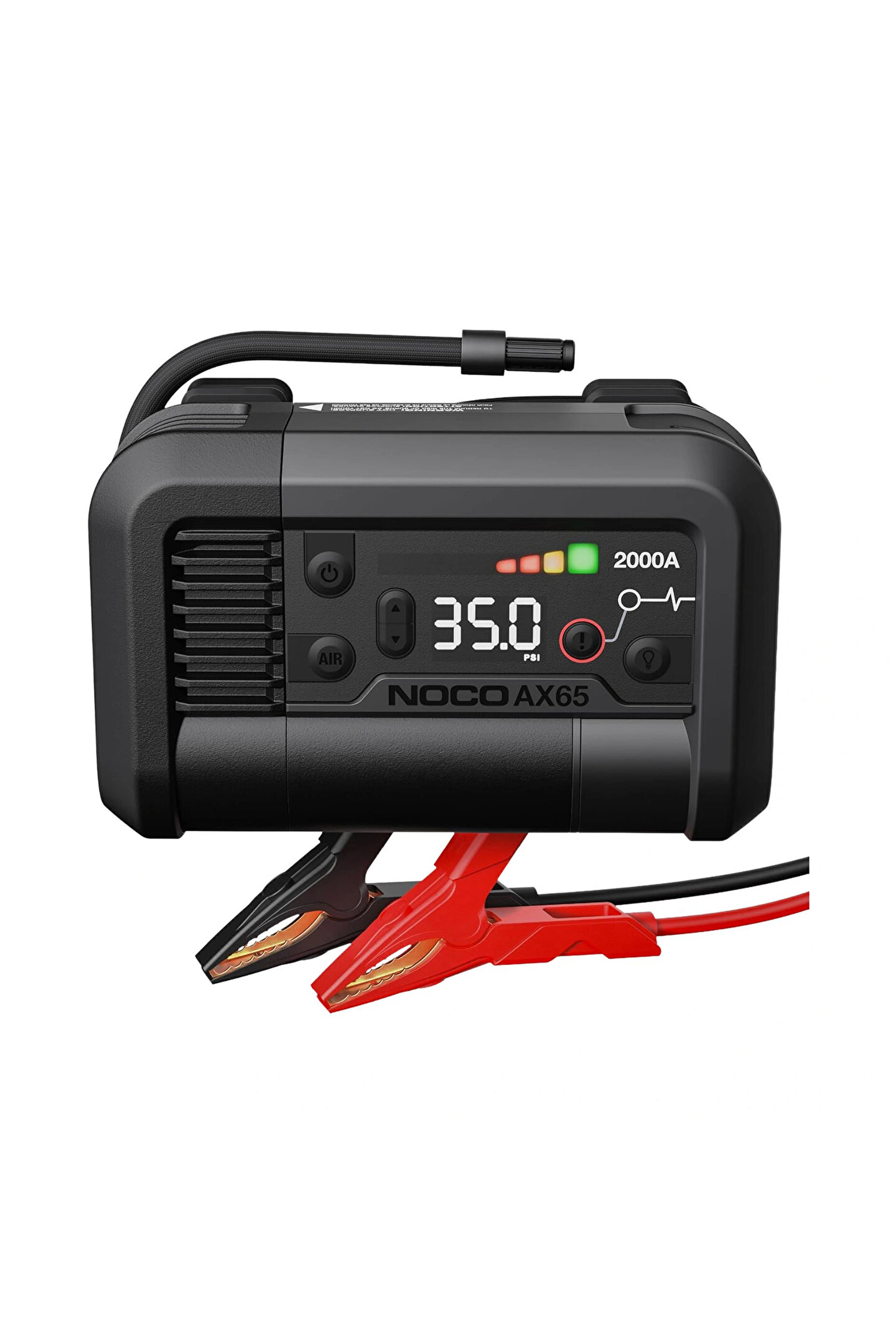 • NOCO AX65 12V Lityum 2000Amp Akıllı Akü Takviye + Pompa + Powerbank + Led Lamba • Tüm 12Volt akülü motorlu araçlarda 2000Ah anlık başlangıç ile başka bir otomobile gerek duymadan aracınızın motorunu anında çalıştırır.; • Başka bir otomobile veya ara kabloya gerek olmadan güçlü Lityum aküsüyle 2000 Ampere kadar anlık başlangıç ile Otomobil, Motosiklet, ATV, Kamyonet, Tekne, Traktör, Çim Biçme, Karavan ve daha birçok aracın motorunu anında çalıştırmanızı sağlar.; • Entegre 100 PSI / 6.90 BAR ayarlanabilir 280Watt güçlü lastik şişirme pompası ile Otomobil, motosiklet, 4x4, SUV araçlar, bisiklet lastikleri ve top gibi havası tamamen inmiş lastikleri dakikalar içinde şişirmenizi sağlar.; • Powerbank özelliği ile 20000mAh.; Kapasitesine sahip Lityum entegre akü ve 60W’a kadar hızlı şarj edebilen Type-C çıkış portu sayesinde cep telefonu, tablet, kamera, bilgisayar gibi elektronik eşyalarınızı şarj edebilmenizi veya takviye cihazınızı şarj edebilmenizi sağlar.; • Tamamen bitmiş bir aküyü saniyeler içerisinde takviye etme imkânı.; • Yüksek basınç hassasiyeti ile sınıfının en hassas lastik basınç sensörüne sahiptir.; • Derin deşarj koruması sayesinde akü takviyenizin voltajı sıfır volta düşmez ve uzun ömürlü şarj/deşarj döngüsü sağlar.; • 8,0 Lt.; kadar benzinli motorları takviye eder ve 6,0 Lt.; kadar dizel motorları takviye yaparak çalıştırmanızı sağlar.; • 12V Sulu Akü, Gel Akü, MF Akü, AGM Akü, EFB Akü, (Kurşun Asit Aküler) takviye etmenizi sağlar.; • Aşırı şarj, derin deşarj, aşırı sıcaklık, düşük sıcaklık, kısa devre gibi farklı koruma yöntemleri sayesinde daha uzun ömürlü ve güvenli kullanım imkânı sağlar.; • Entegre mikro işlemci sayesinde dijital ekran üzerinde basınç değerlerini en doğru şekilde göstererek kullanıcı ve makine güvenliğini en üst seviyede tutmasını sağlar.; • Entegre LCD dijital ekran sayesinde, lastik basınç değerlerini ve arıza tespit uyarılarını görmenizi sağlar.; • SOS ve acil durum flaşı dâhil olmak üzere 6 farklı konumda kullanılabilir parlak 100 lümen LED lamba.; • Lityum akü takviye cihazı şarjını bir yıl boyunca muhafaza eder, bu sayede istediğiniz an kullanıma hazırdır.; • Type-C Şarj portu sayesinde akıllı telefon, tablet, bilgisayar, kamera ve benzeri elektronik ürünler, kamp ürünleri, dağcılık ürünlerinizi şarj etme imkânı ve 50 cm uzunluğunda Type-C şarj kablosu sayesinde geniş kullanım alanı sunar.; • Ağır hizmet tipi döküm pompa gövdesi ile uzun süre profesyonel kullanım.; • Akünüzdeki güç 2 Volt ’tan bile düşük ise takviye için özel tasarlanan Manual Override takviye mod’u sayesinde anında takviye etme imkânı.; • PSI & BAR & KPA göstergeli Led aydınlatmalı dijital LCD ekran.; • Takviye Türü: 12V Kurşun Asit Aküler • Pil Kapasitesi: 31.8Wh- LITYUM-İYON • Anlık Takviye Gücü: 2000A • Takviye Aralığı: 8,0 Lt.; Benzin / 6,0 Lt.; Dizel Motorlar • Aydınlatma Gücü: 100 Lümen • Lastik Şişirme Gücü: 100 PSI / 6.90 BAR • Hava Basma Gücü: 67Lt.; / Dk.; • Hortum Uzunluğu: 90 Cm • Type-C Çıkışı: 5V/3A – 9V/3A – 12V/3A – 15V/3A – 20V/3A • Çalışma Sıcaklığı: -20 ˚ C / +50 ˚ C • Çalışma Akımı (Pompa): 12V / 22A / 280W • Ölçüler: 21.5 x 16.7 x 9,9 Cm • Paket İçeriği: Takviye Maşaları, 3 Adet Şişirme Ucu, Type-C USB Şarj Kablosu, 1 Adet Mikrofiber Taşıma Çantası.; • Ağırlık: 3,70 Kg.; (Kıskaçlar ve Hava Hortumu Dahil)