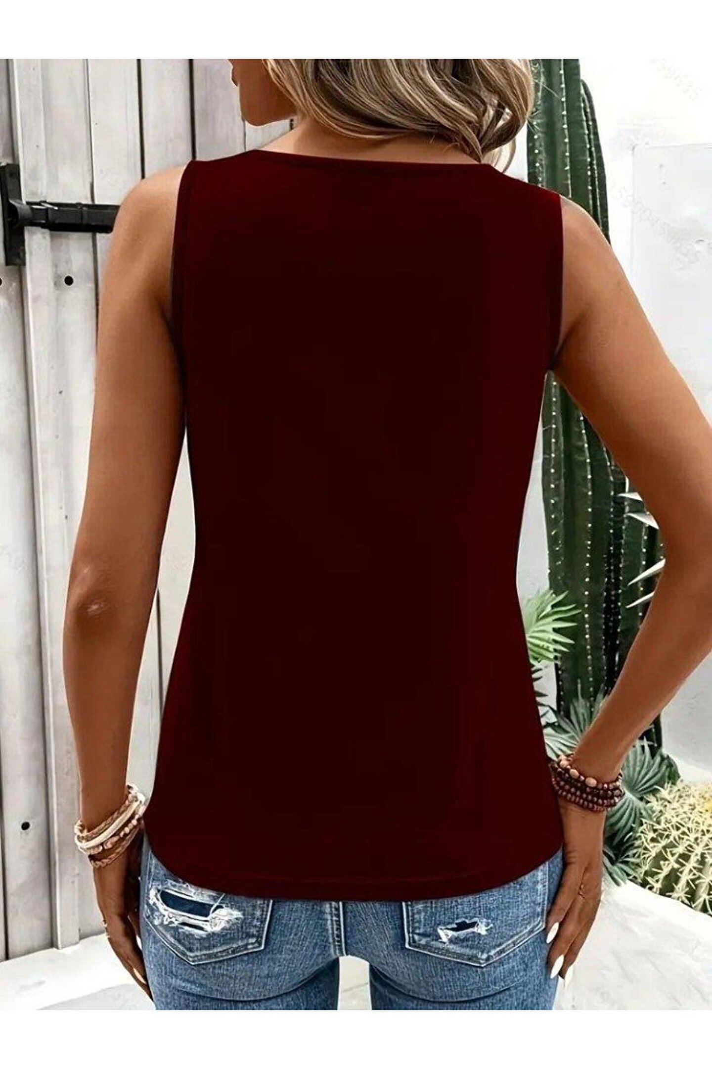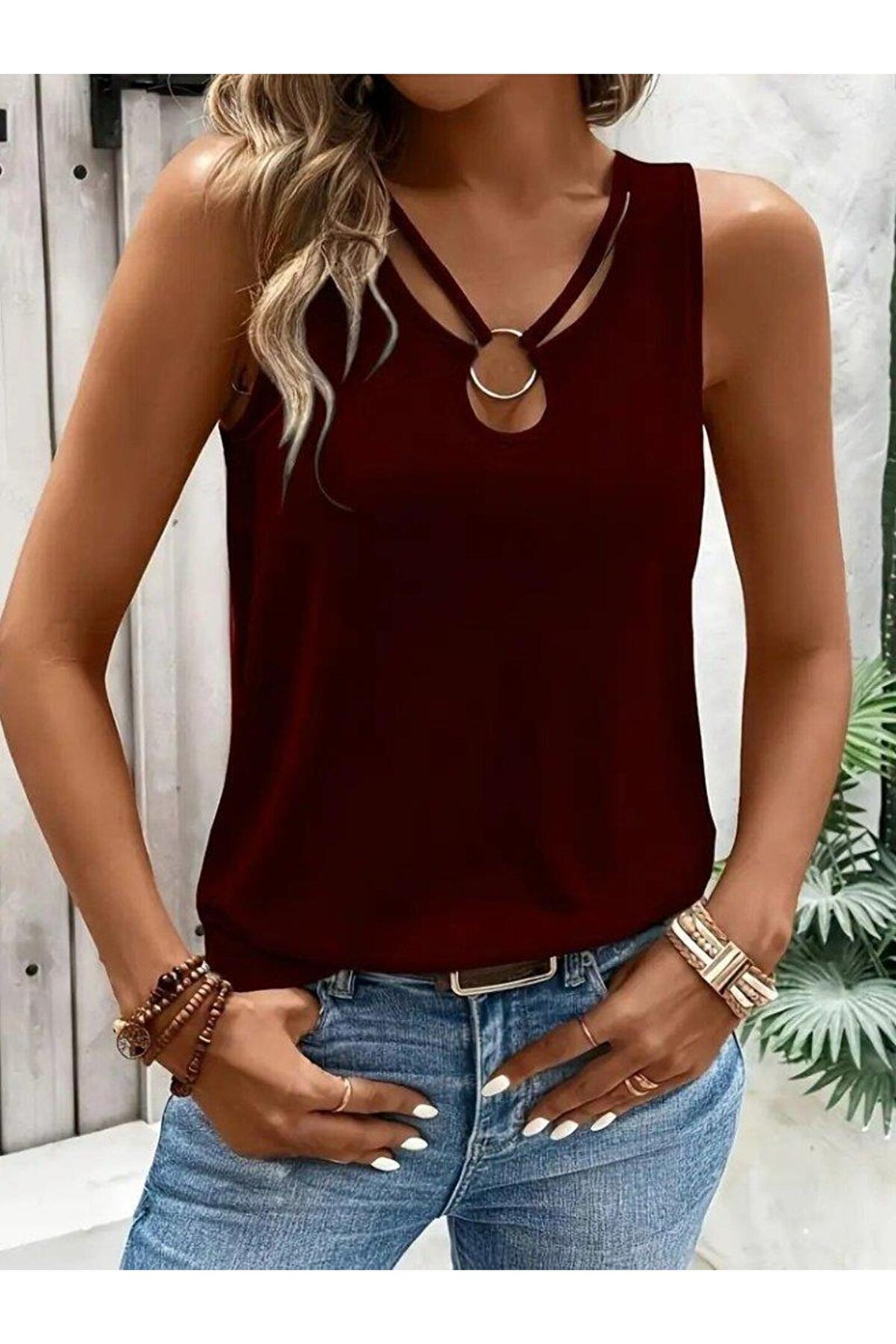 Kadın Askılı Yaka şerit Halka Detaylı Viskon Bluz