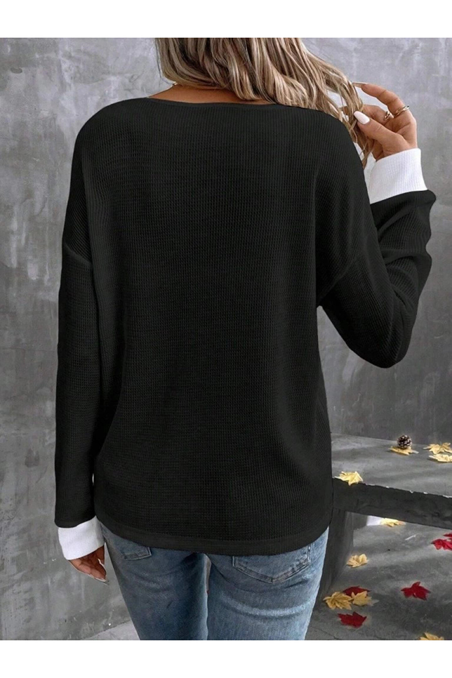 NORA Boutique Kadın Uzun Kollu V Yakalı Waffle Bluz