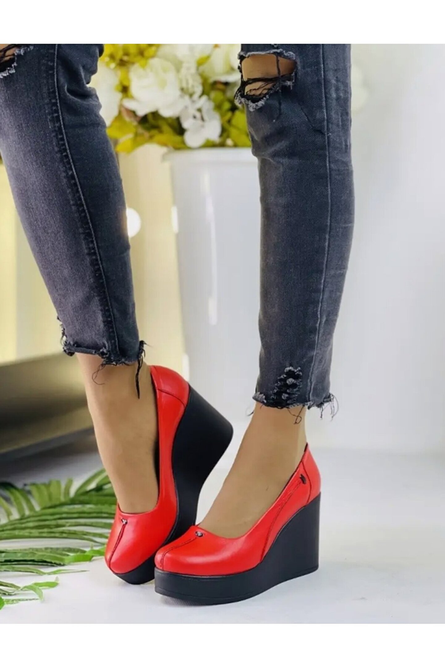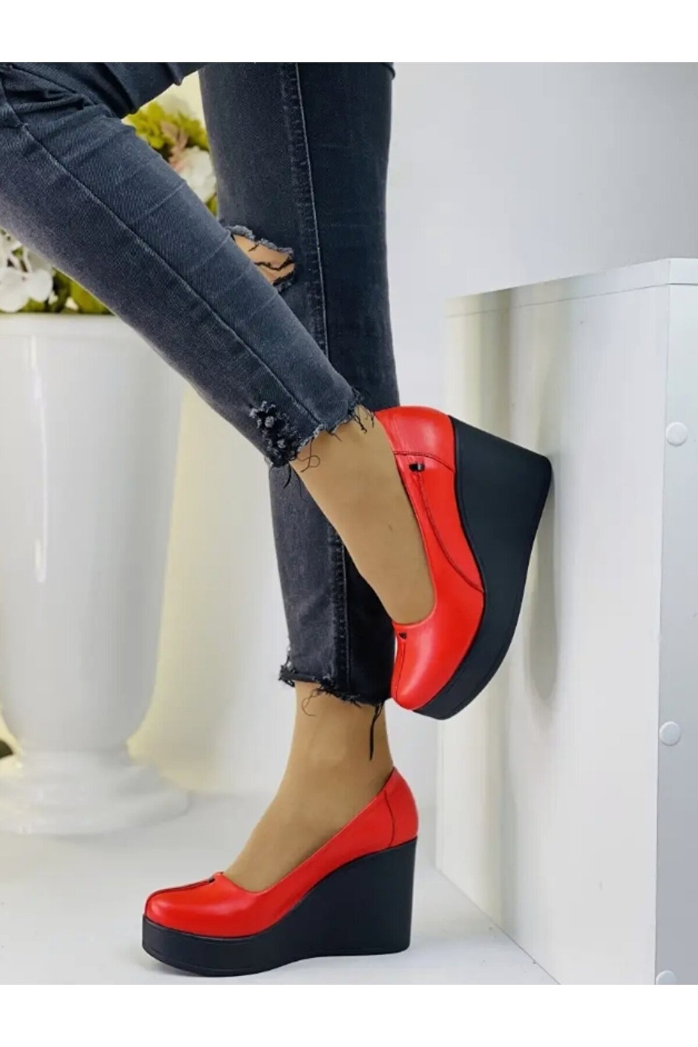 İÇİ DIŞI %100 HAKİKİ DERİ SATEN DESENLİ PEDLİ İÇ TABAN DOLGU TOPUK AYAKKABI -*DİKKAT*- BİR NUMARA BÜYÜK TAVSİYE EDİLİYOR