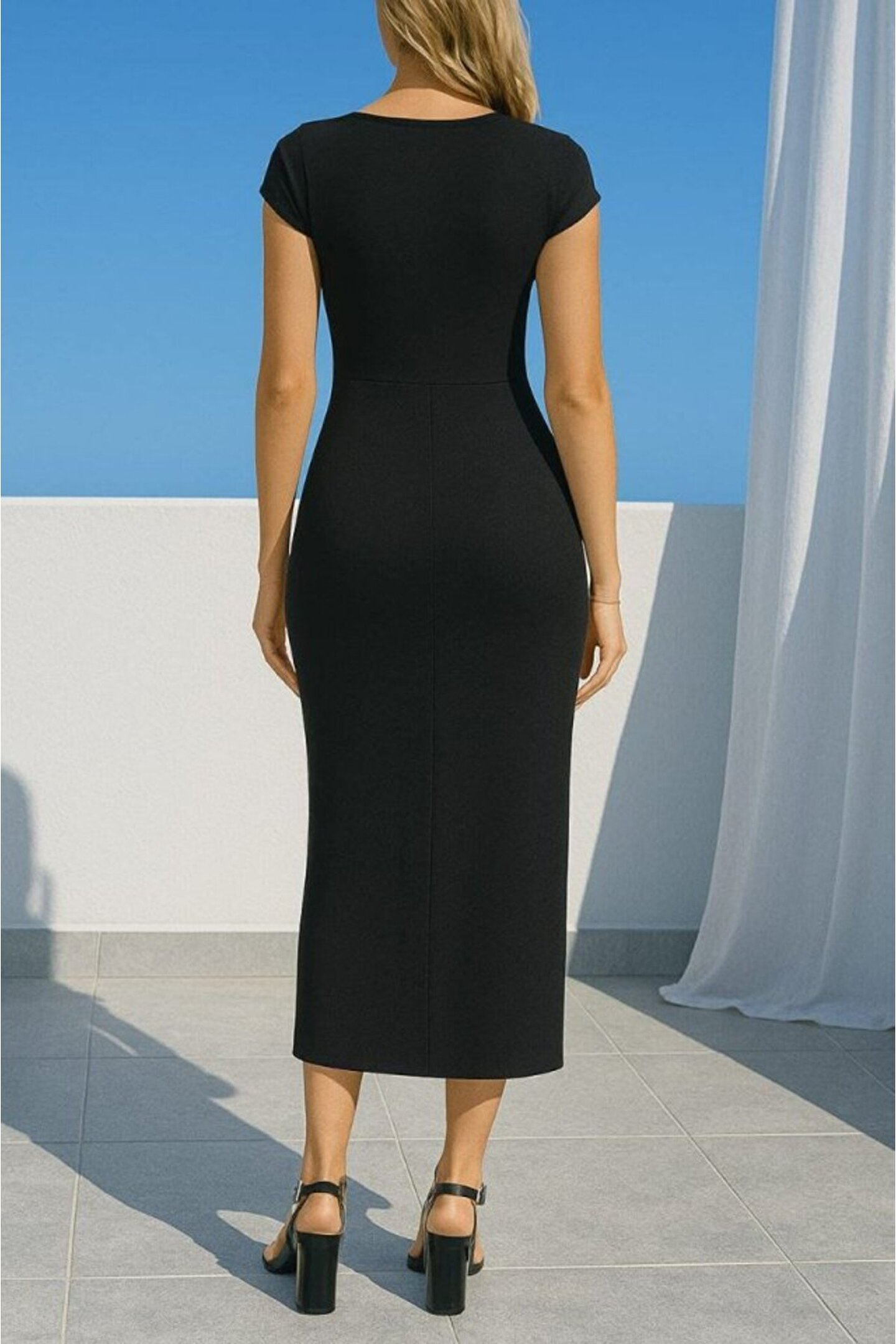 Nova Bazaar Kadın Sandy Kumaş Metal Toka Detaylı Midi Boy Elbise