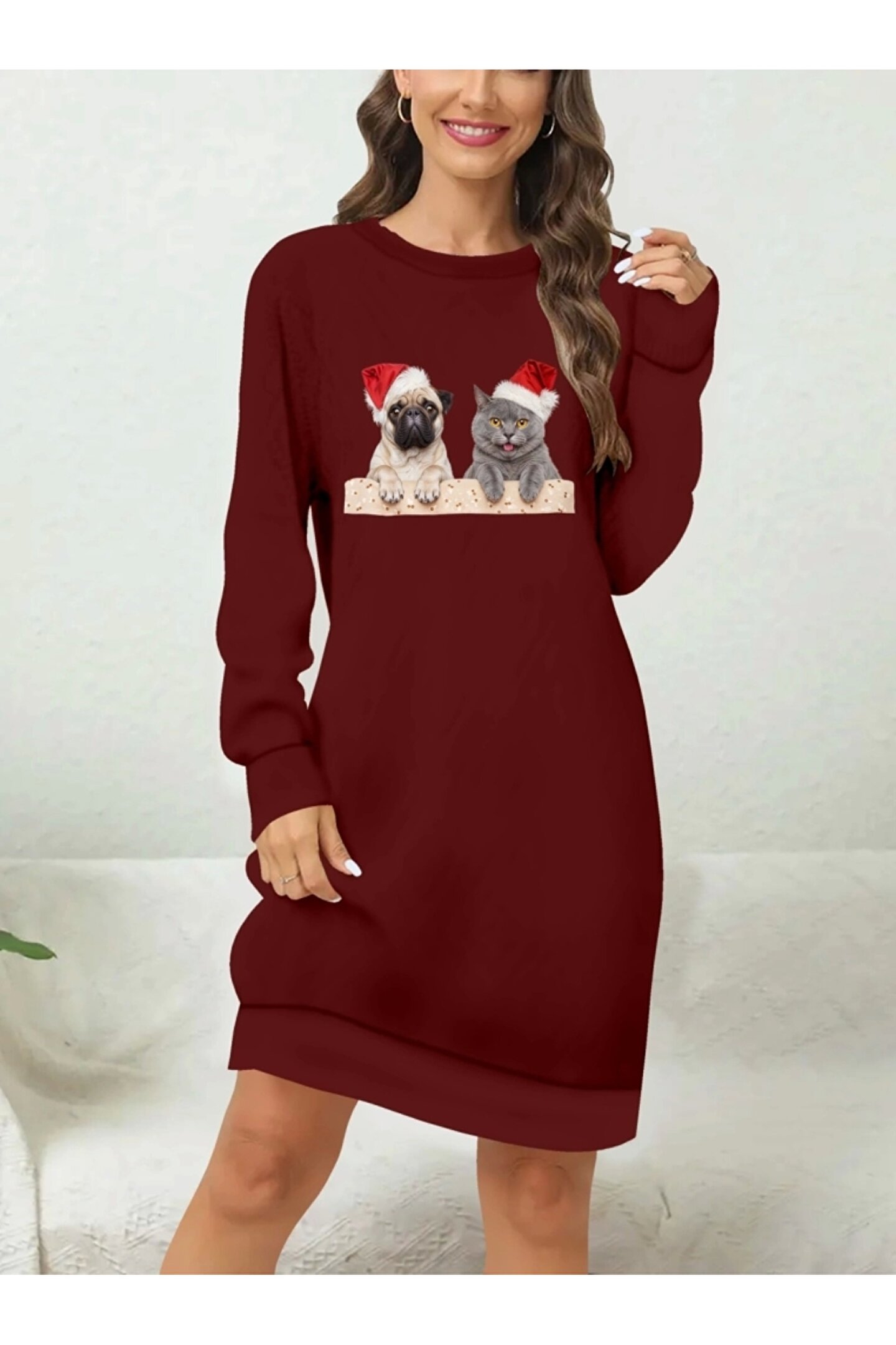 Kadın Uzun Kollu Bisiklet Yaka Desenli Viskon Iki Iplik Elbise