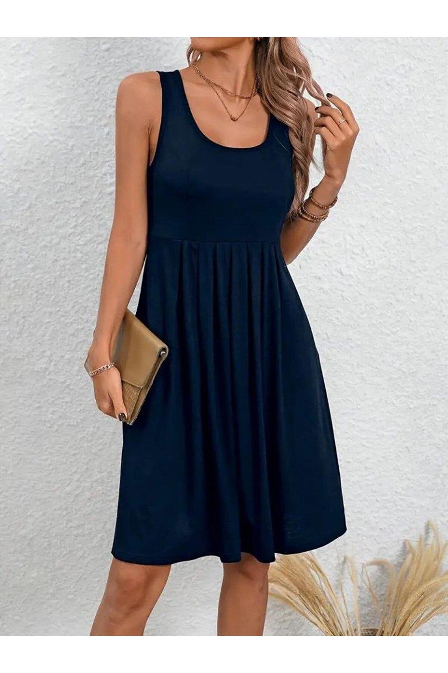 novafems Kadın Askılı Yuvarlak Yaka önden Pileli Viskon Elbise
