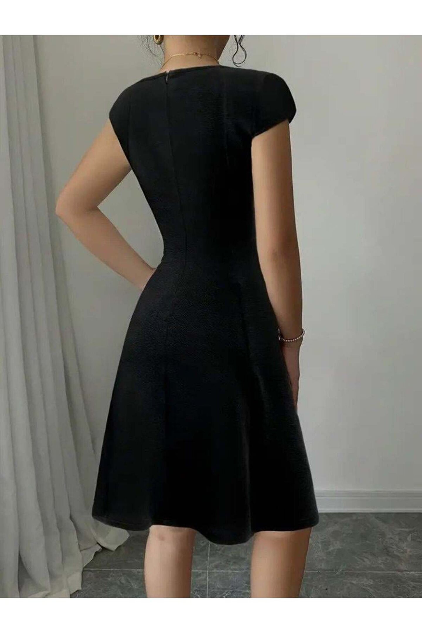 novafems Kadın Kısa Kollu Geometrik Yakalı Janjan Krep Elbise