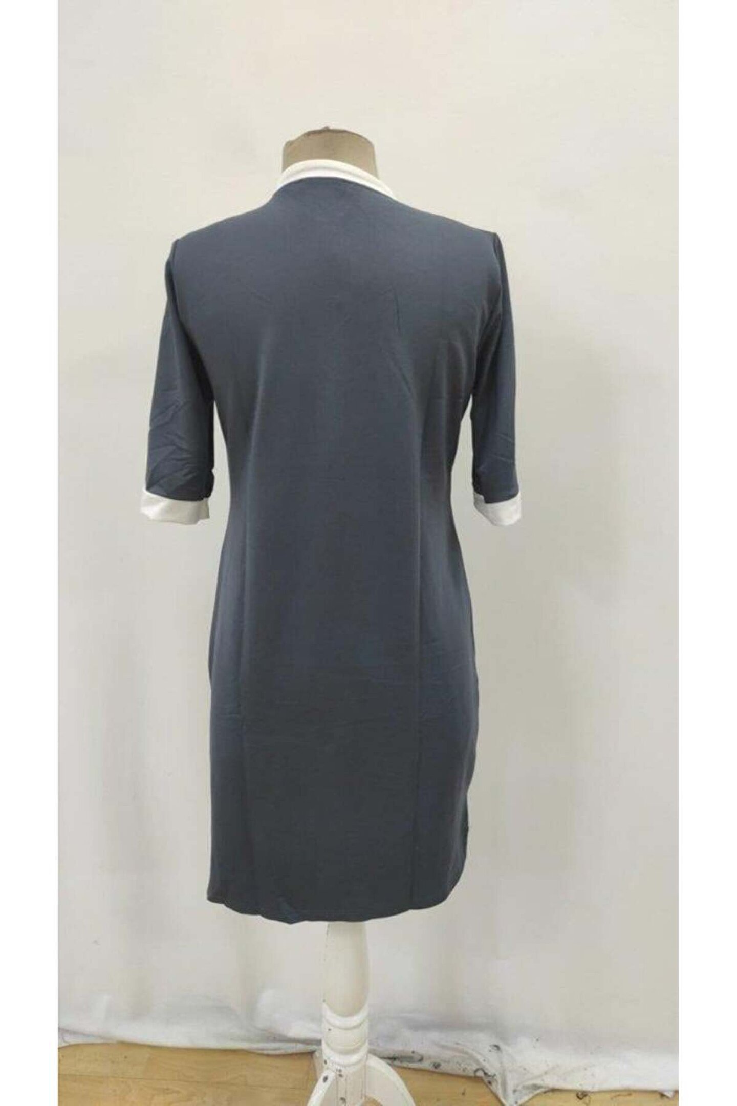 novafems Kadın Kısa Kollu Yakadan Fermuarlı Cepli Yandan Yırtmaçlı Viskon Elbise