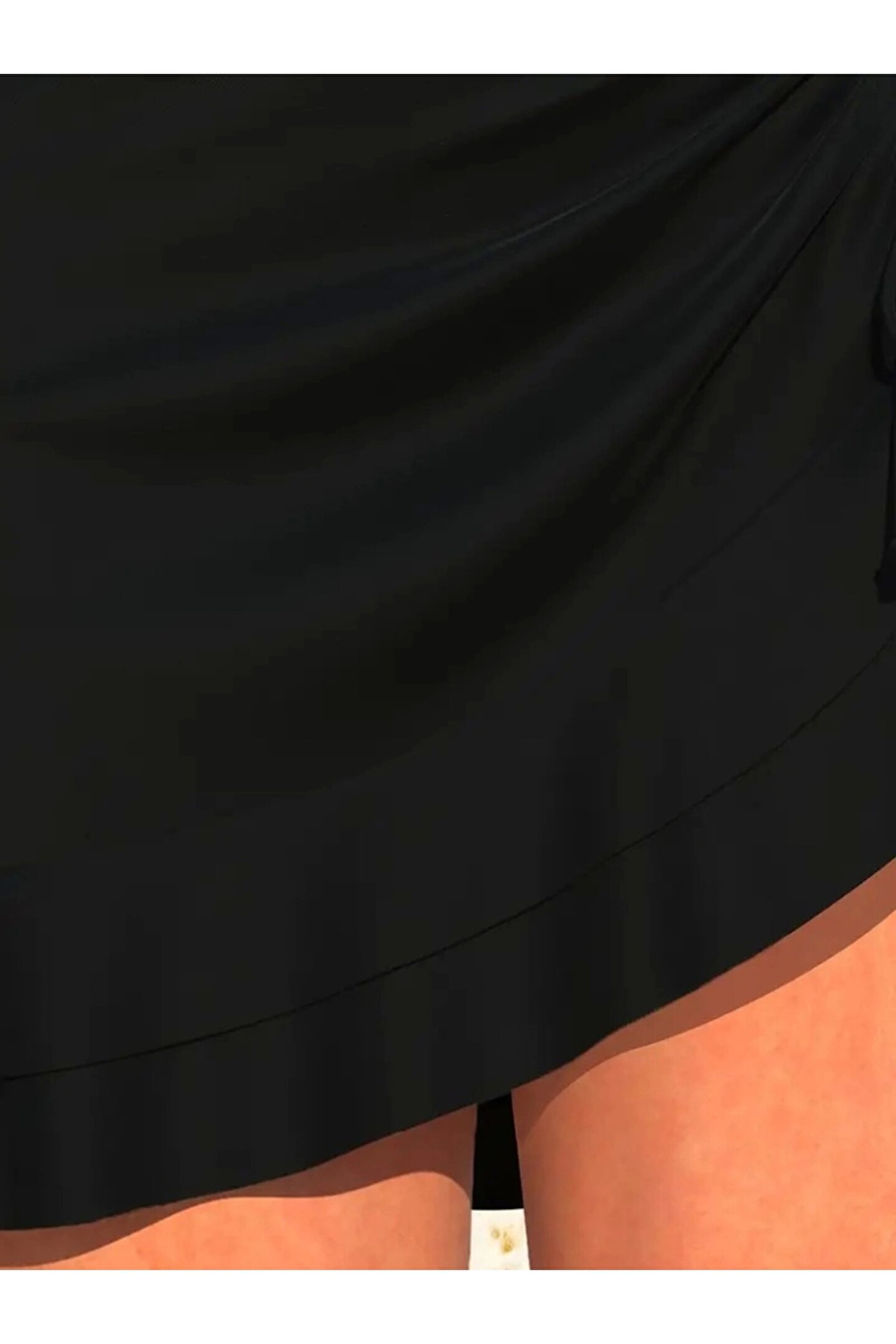 novafems Kadın Yüksek Bel Yandan Büzgülü Fırfırlı Kısa Sandy Etek