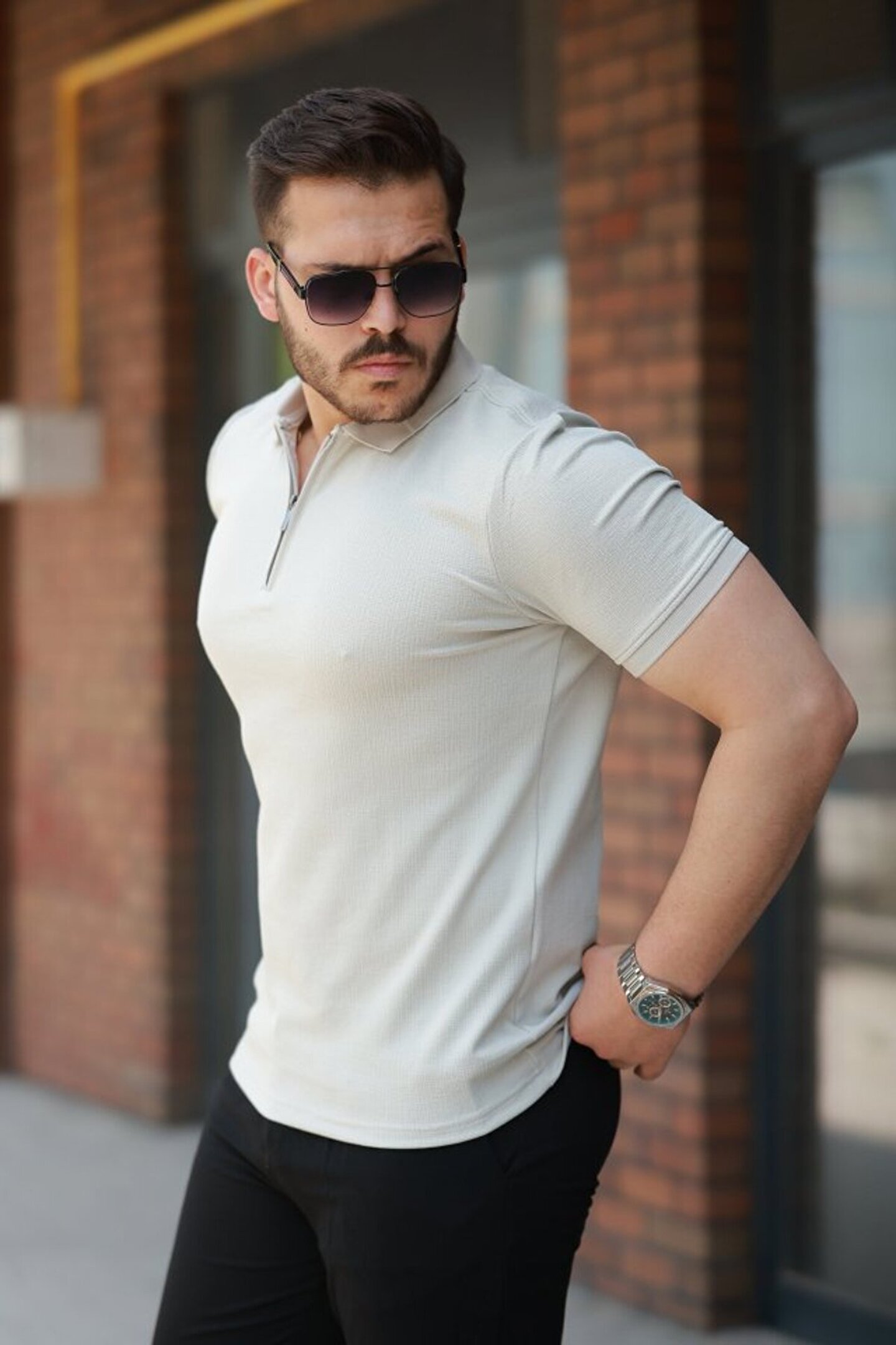 novafems munn collection Erkek Fermuarlı Yaka Kısa Kollu Tişört