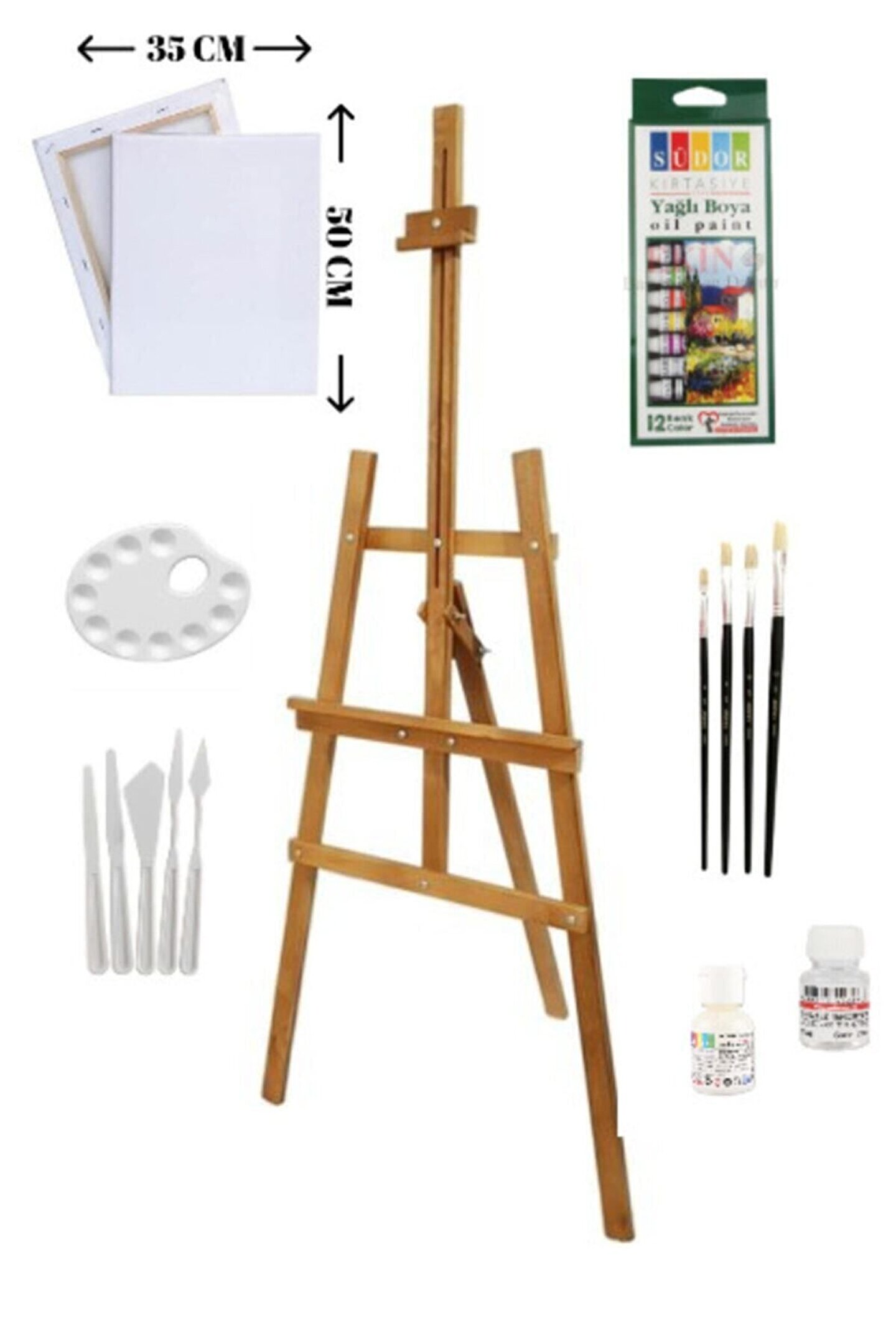 Yağlı Boya Başlangıç Seti Ahşap Şövale 175 Cm Boyanabilir Verniklenebilir