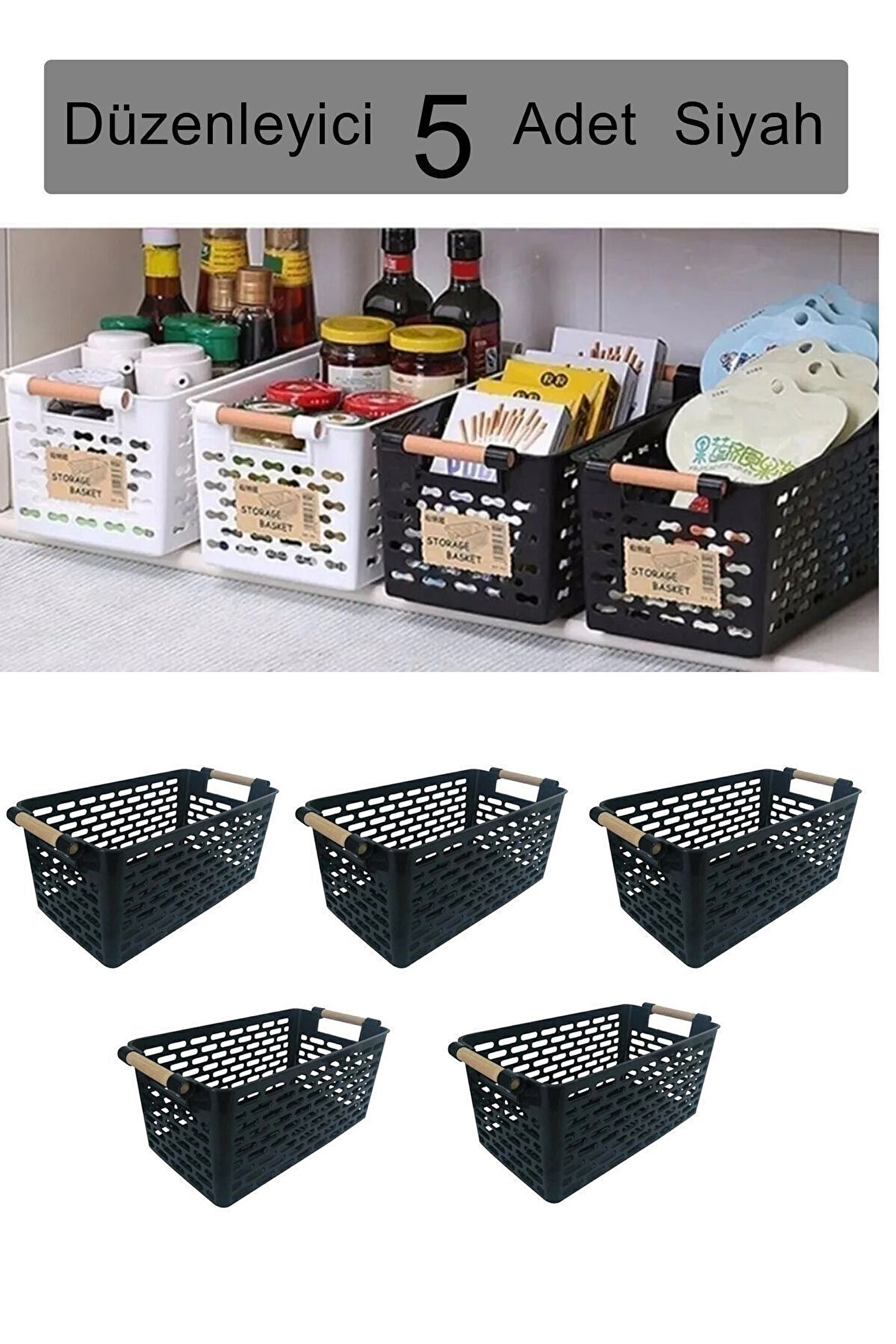5 Adet Çok Amaçlı Plastik Tutacaklı Organizer Sepet - Dolap içi & Çekmece & Banyo Düzenleyici Sepet