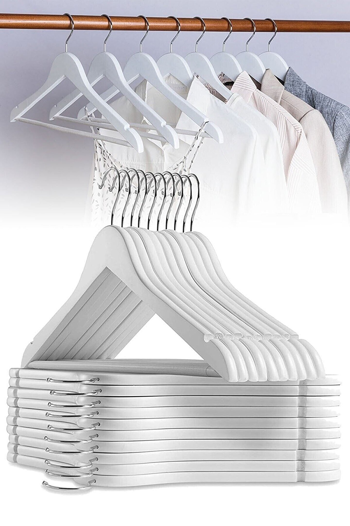 6 Adet Ahşap Görünümlü Plastik Kıyafet Ve Elbise Askısı Beyaz