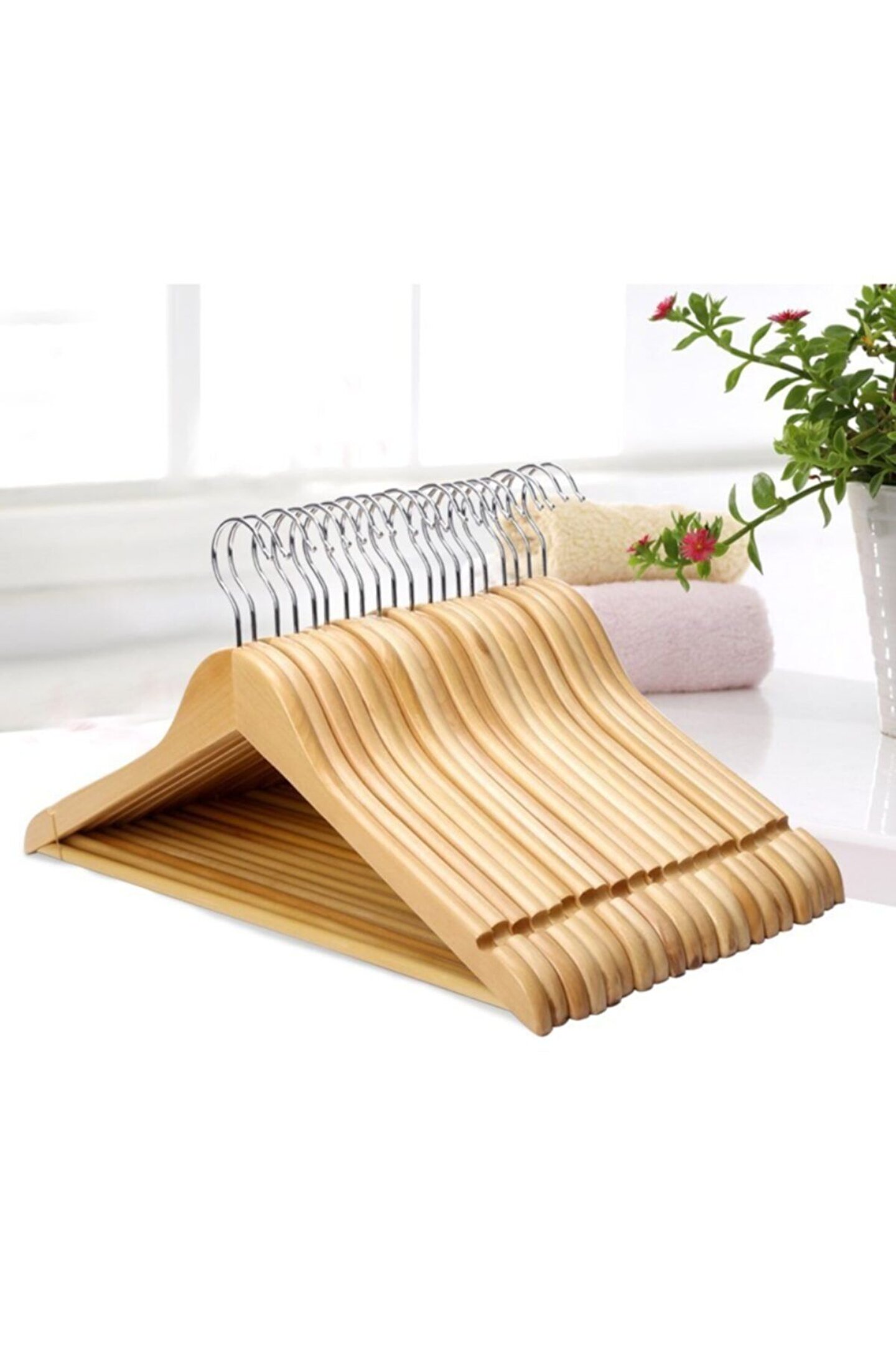 Ahşap Askı 24 Adet Naturel Kıyafet Ve Elbise Askısı Gömlek Askısı Ahşap