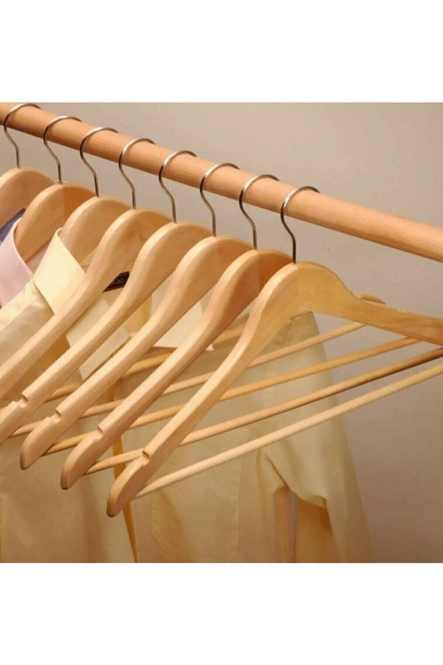 Ahşap Askı Naturel Kıyafet Ve Elbise Askısı Gömlek Askısı 5 Adet