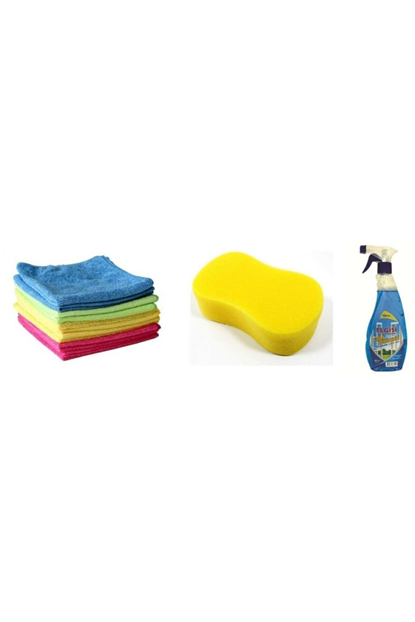 Mikrofiber Temizlik Bezi 4 Adet + Oto Araba Yıkama Sünger+ Camsil