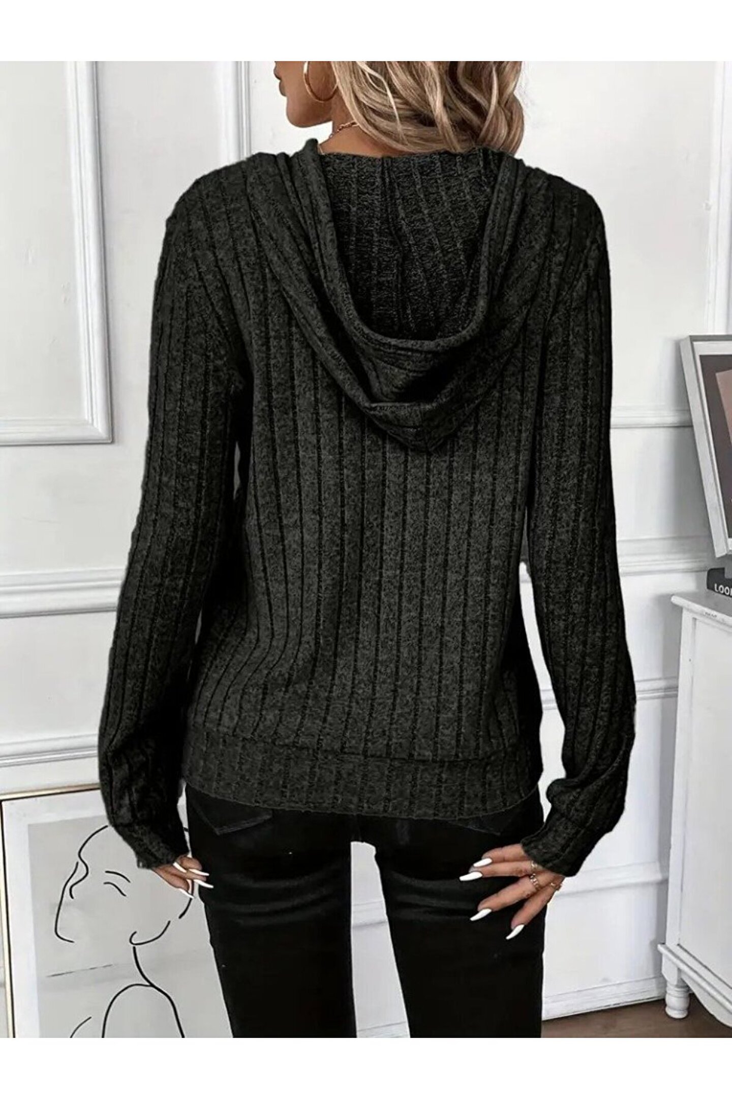 Omarı EQURİ Kadın Uzun Kollu Kapşonlu Bağcıklı şardonlu Kaşkorse Bluz