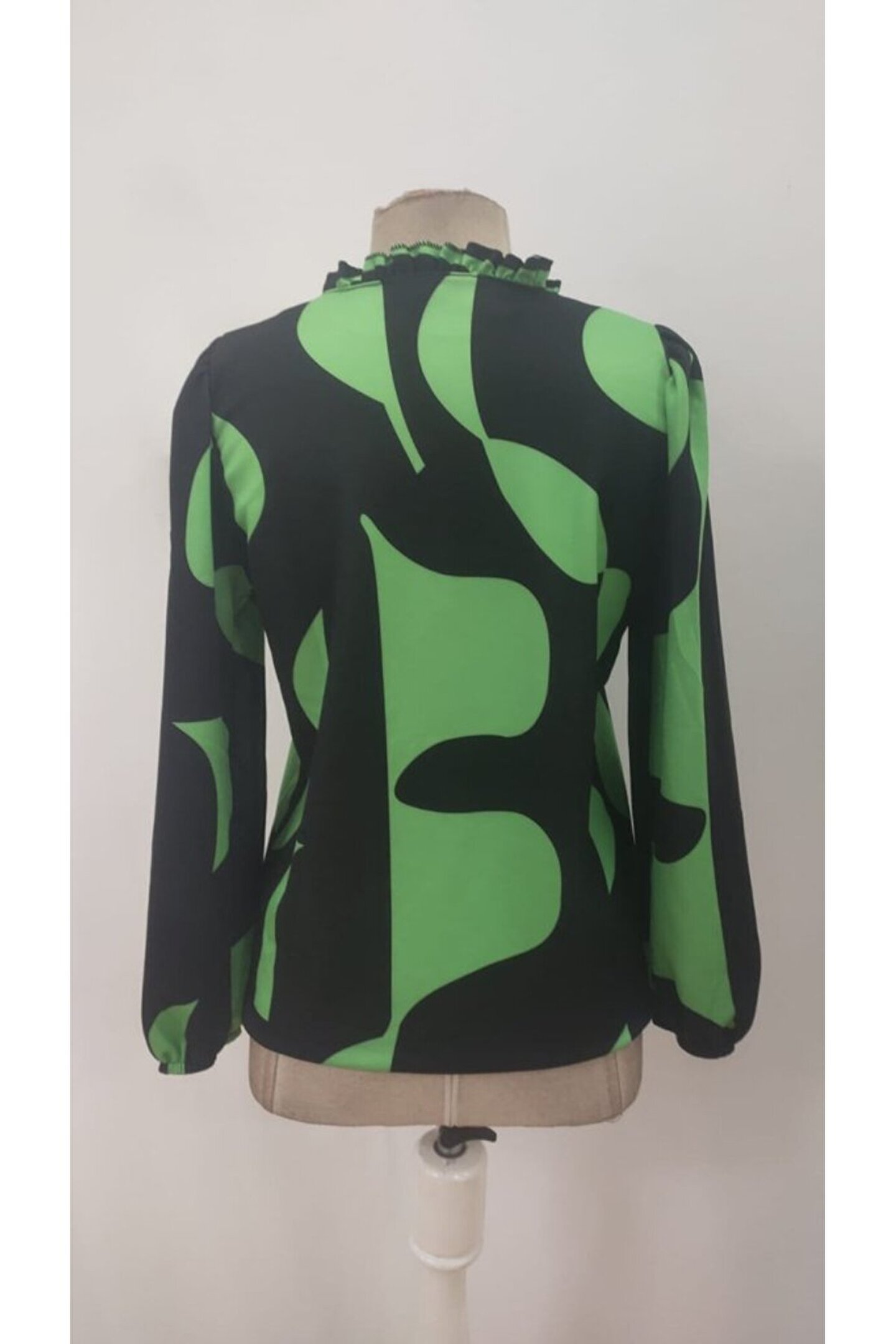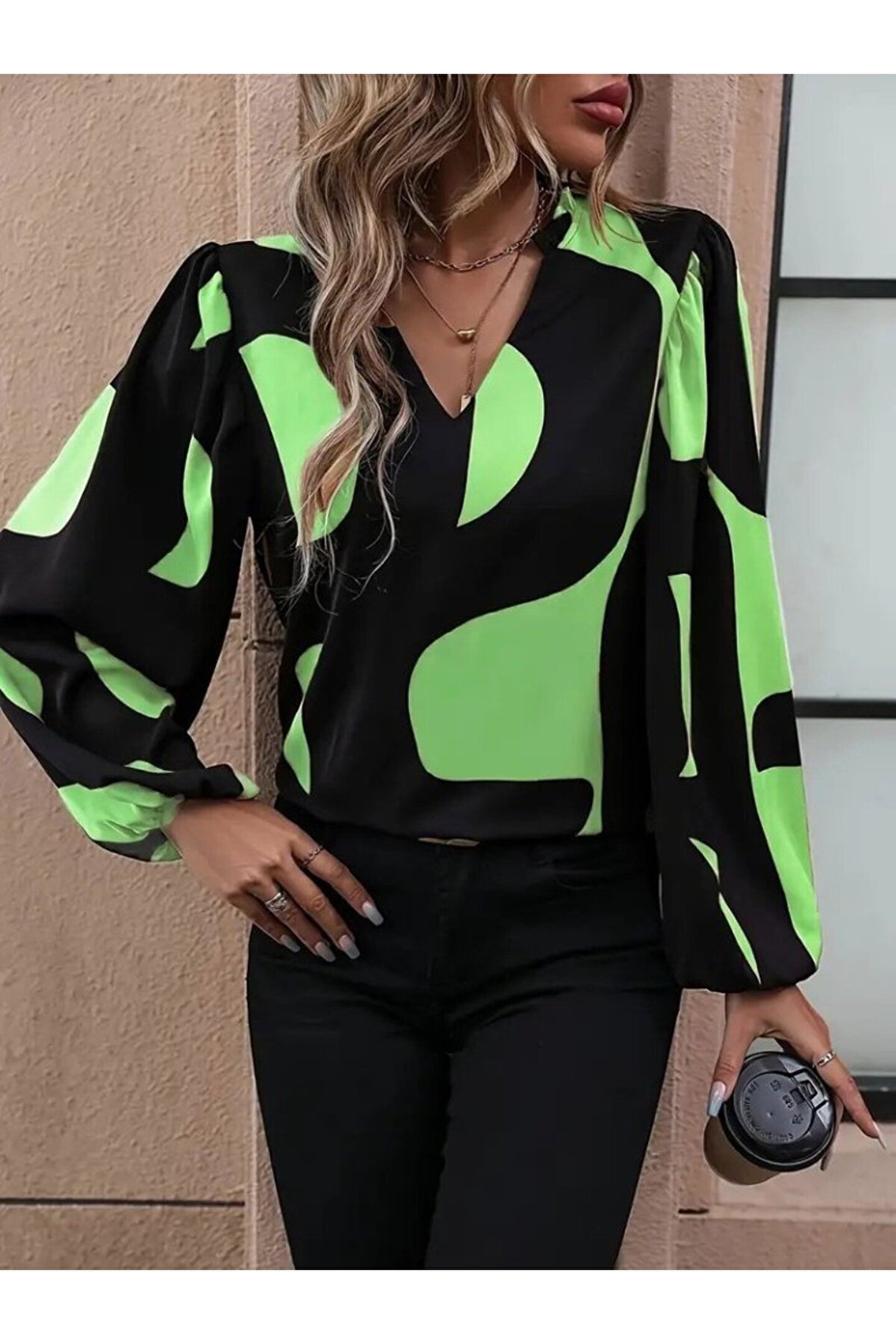 Omarı EQURİ Kadın Uzun Kollu V Yakalı Desenli Modal Bluz
