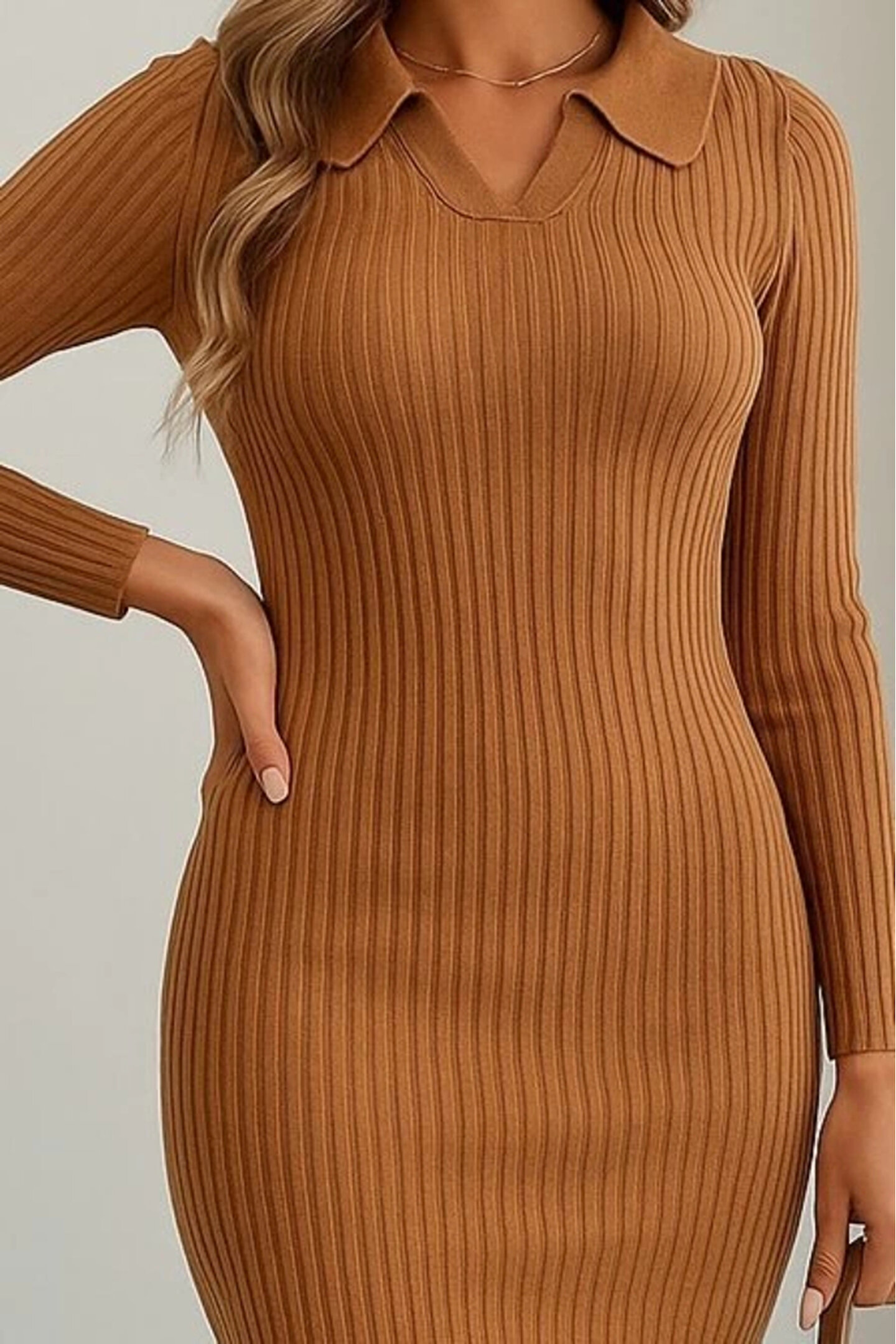 Kadın Uzun Kollu Yakalı Triko Elbise