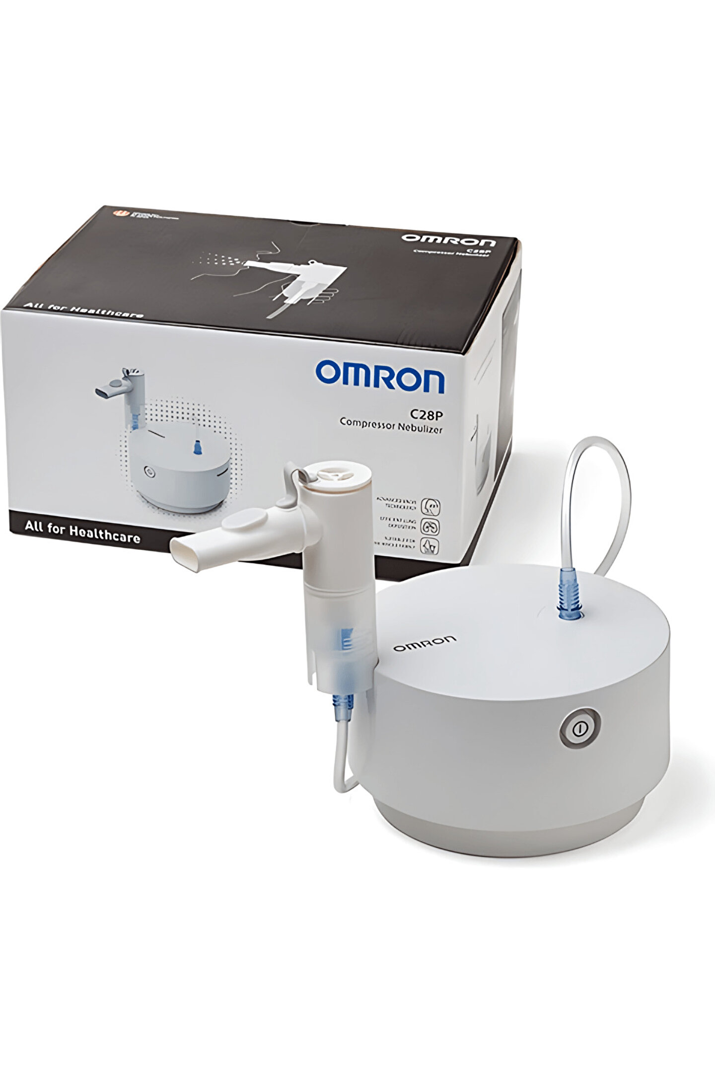 "Sık kullanım için yüksek verimli nebulizatör.; ;Bu güçlü nebulizatör, astım, kronik ve alerji gibi solunum rahatsızlıklarının başarılı bir şekilde tedavisi için solunum terapistleri ile birlikte geliştirilmiştir.;OMRON C28P, Gelişmiş Valf Teknolojisine sahip bir nebulizatördür - size doktorunuzun amaçladığı tedaviyi sağlar.;Gelişmiş Valf Teknolojisi, OMRON tarafından soluma sırasında ilaç akışını en üst düzeye çıkarmak ve nefes verirken ilaç israfı olmamasını sağlamak için tasarlanmıştır.;Çeşitli ilaçlarla kullanıma uygun olan nebulizatör Astım, KOAH, bronşit, bronşiolit gibi kronik rahatsızlıkların tedavisinde kullanılabilir veya ve soğuk algınlığını hafifletmek ve tedavi etmek için salin solüsyonuyla birlikte kullanılabilir.;Çok yönlü cihaz, yetişkin ve çocuk boyutunda rahat ve yumuşak kenarlı bir maske ile birlikte geldiğinden birden fazla kullanıcı için idealdir.; Tüm aile tarafından kullanılabilen tek bir ünite olan cihaz, ailenin birden fazla üyesi tarafından sık sık kullanılmak üzere tasarlanmış ve temizlenmesi kolay hale getirilmiştir.;* Pediatristlerin tavsiye ettiği 1 numaralı marka¹;1. Bağımsız araştırma şirketi IPSOS'un Ocak 2020'de bağımsız hekimlerle yaptığı araştırma sonuçlarına göre";"* C28P Nebulizatör;* Nebulizatör Kiti;* Ağızlık;* Burunluk;* Hava Borusu (PVC);* Hava Filtreleri x5;* Yetişkin Maskesi (PVC);* Çocuk Maskesi (PVC);* Taşıma Çantası;* Kullanım Kılavuzu"