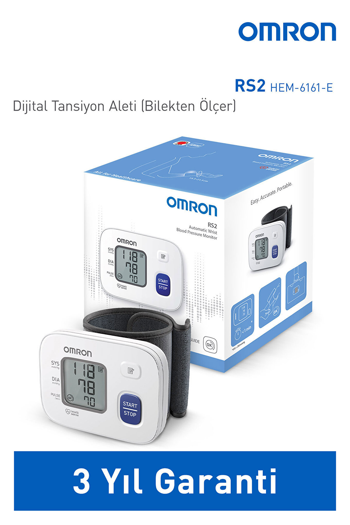 OMRON RS2 bilek kan basıncı ölçüm cihazı tam otomatik olup kan basıncınızı kontrol etmek için kolay ve rahat bir yöntem sağlar. Daha konforlu bir deneyim için nazik bir şekilde şişirme ve söndürme kontrolü sağlamak amacıyla optimum hız ve basıncı belirleyen OMRON Intellisense teknolojisine sahiptir.