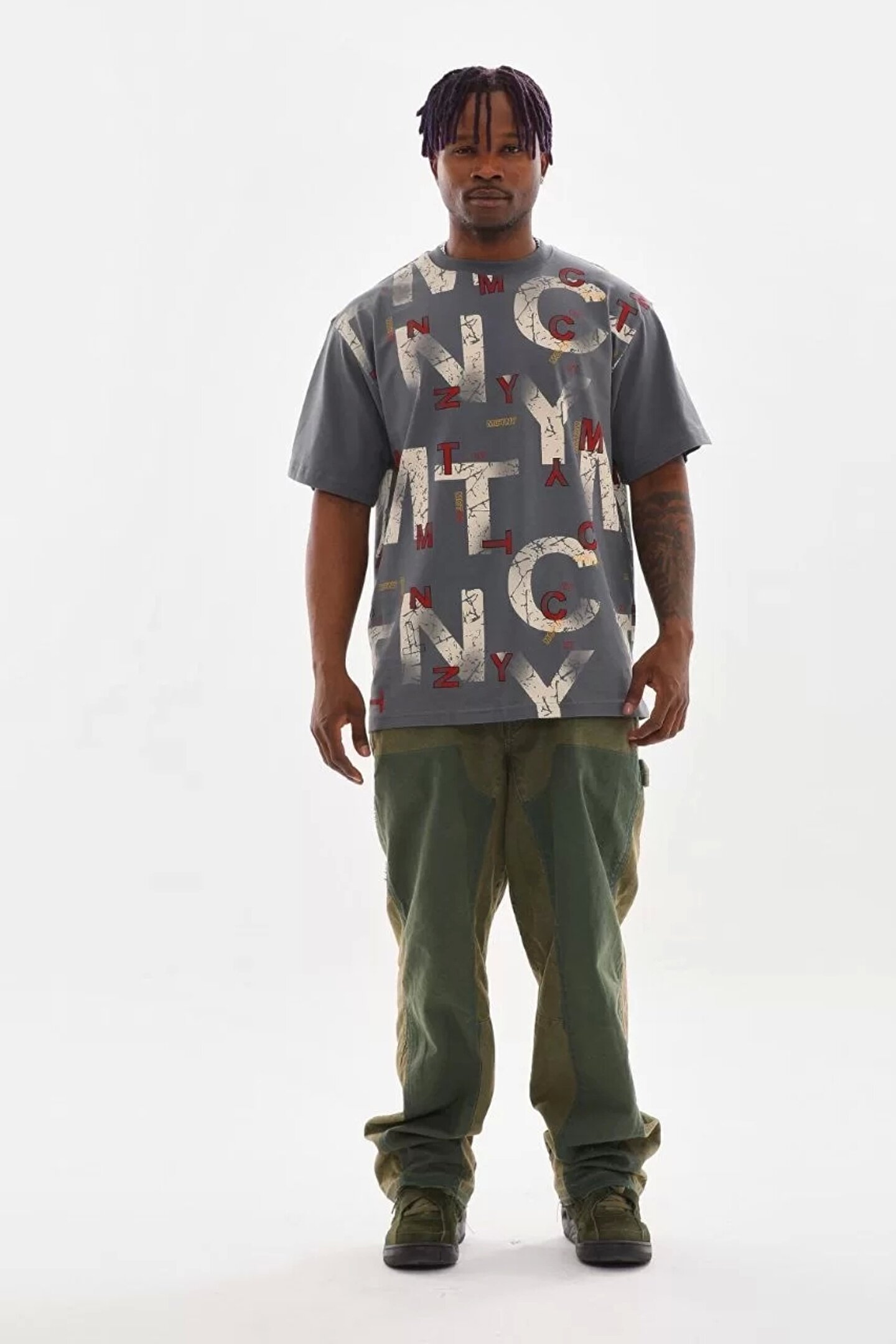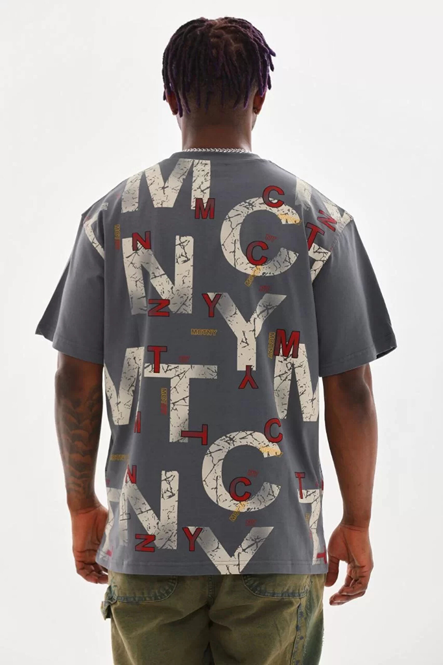 ONZEMU Unisex Baskılı Oversize T-Shirt - Füme