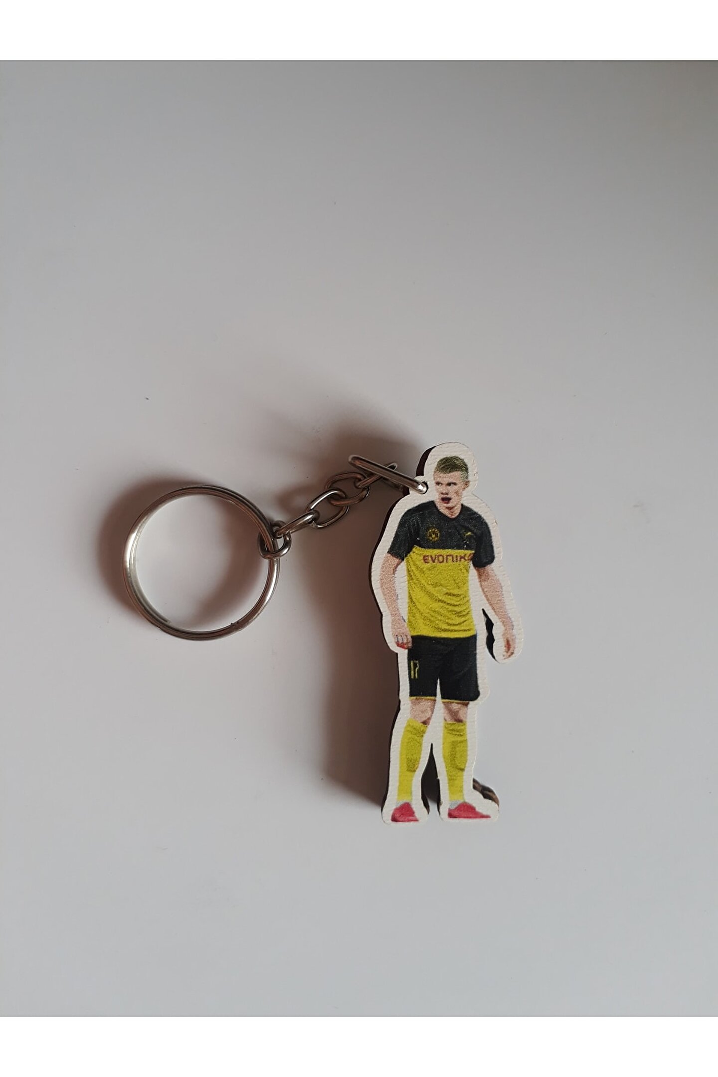 Çift taraflı tasarımı sayesinde, hem kişisel zevkinize uygun bir görünüm sunar hem de farklı ortamlara uyum sağlar.; Ahşap malzeme kullanımı, dayanıklılığı artırırken doğal bir estetik kazandırır.; El yapımı olmasıyla her biri benzersiz ve özgün bir tasarıma sahiptir.; Kolayca takılıp çıkarılabilen klips mekanizması, hızlı erişim sağlamanız için idealdir.; Çift taraflı ahşap haaland anahtarlık, günlük kullanım için pratik ve şık bir aksesuardır.;